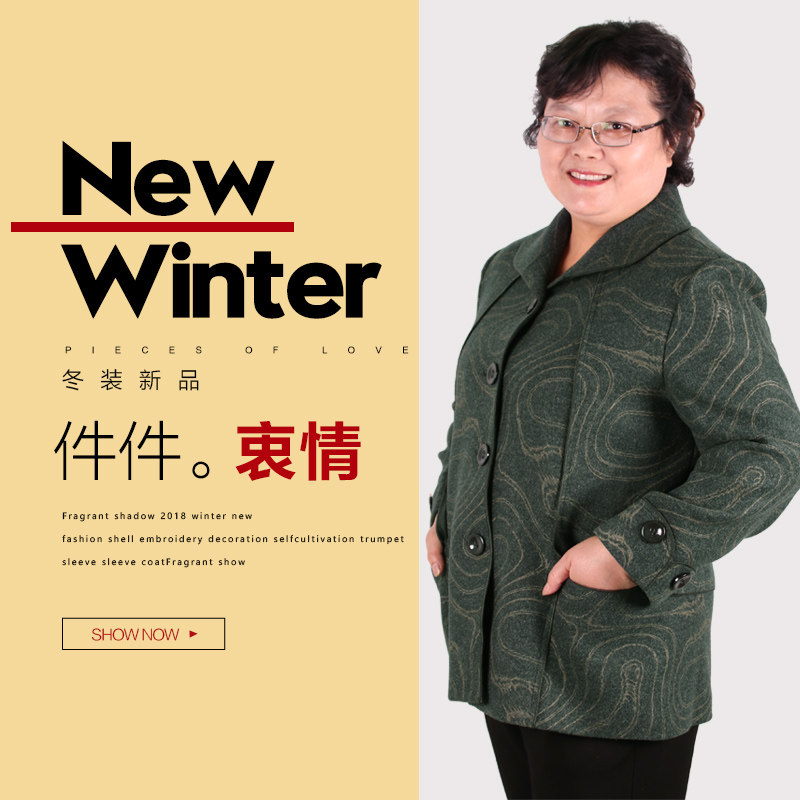 200 catty of autumn and winter large size Mom clothes in old age Gats up overweight Grandmother cardiovert cardiovert wool coat female blouse