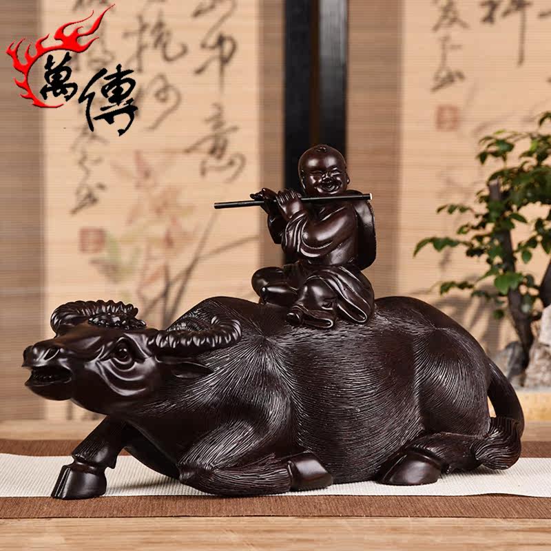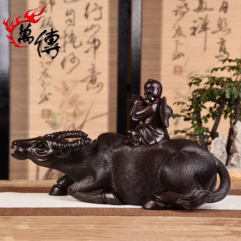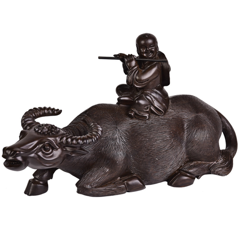Wooden carvings of zodiac animals, cattle ornaments, cattle riding craft gifts, buffalo ornaments, solid wood home accessories, gifts