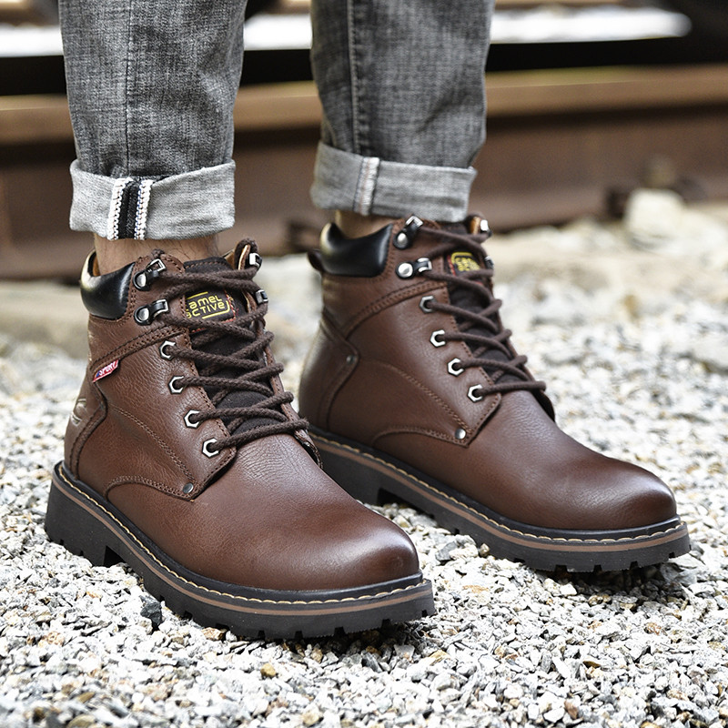 German Camel Dynamic Plus Suede Warm Men's Shoes Winter Thickening High Bunch Cotton Shoes Men Tooling Martin Boots Genuine Leather-Taobao