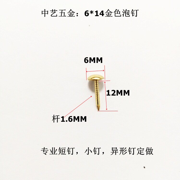 Gold small foam nail silver decorative nail 6 * 14MM sofa wood case small nail drawing with small head nail antique nail round head nail