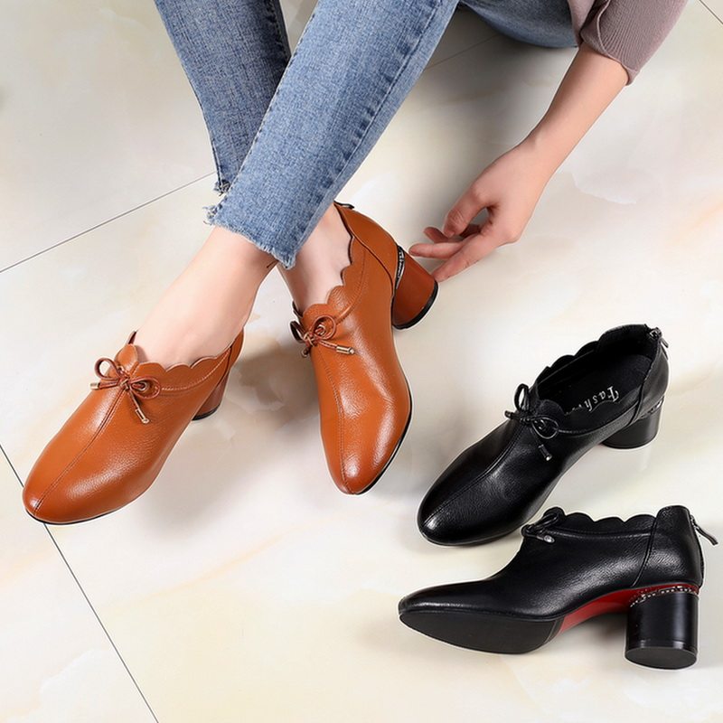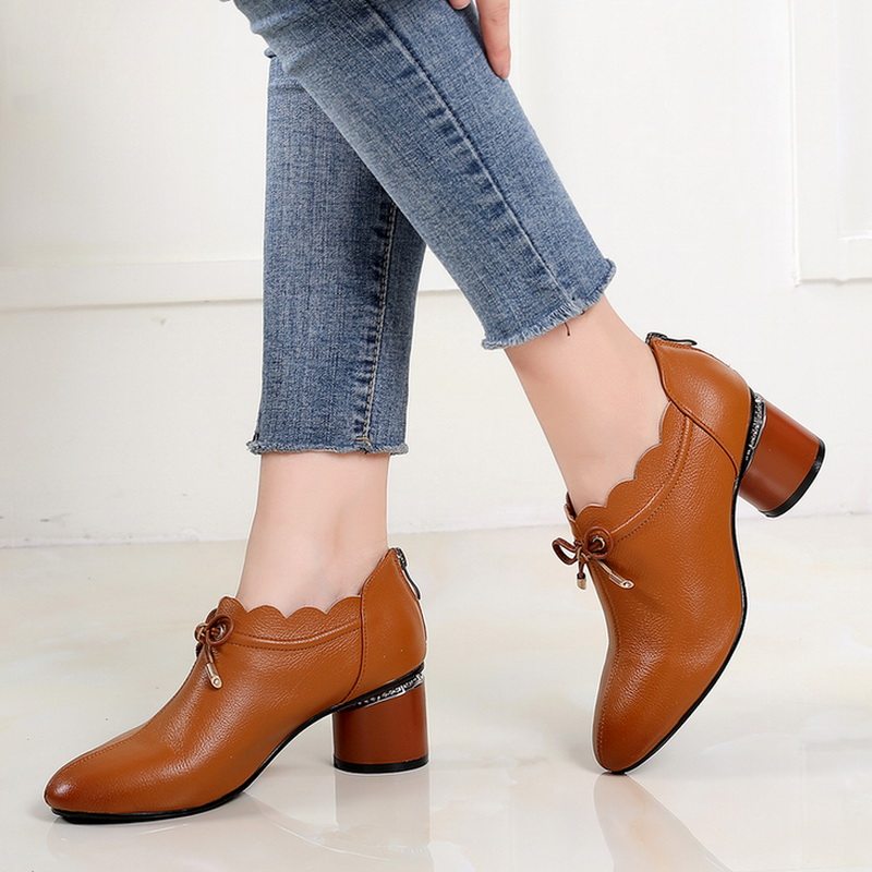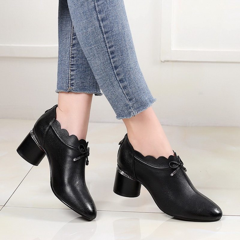 High-heeled short boots women's early autumn 2022 new leather Korean version thick-heeled single boots middle-heeled bare boots large size women's shoes 41-43