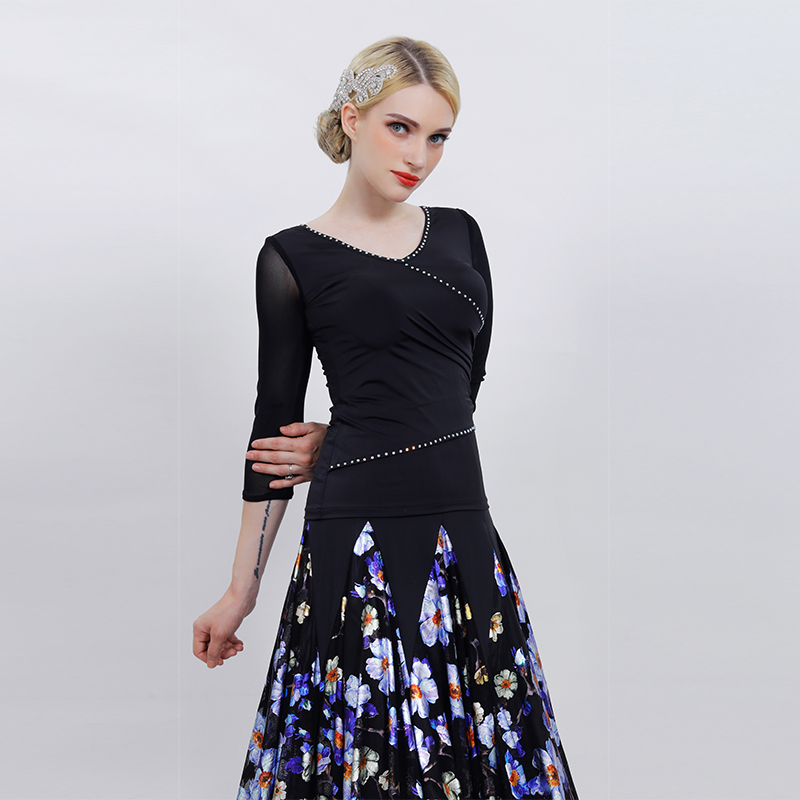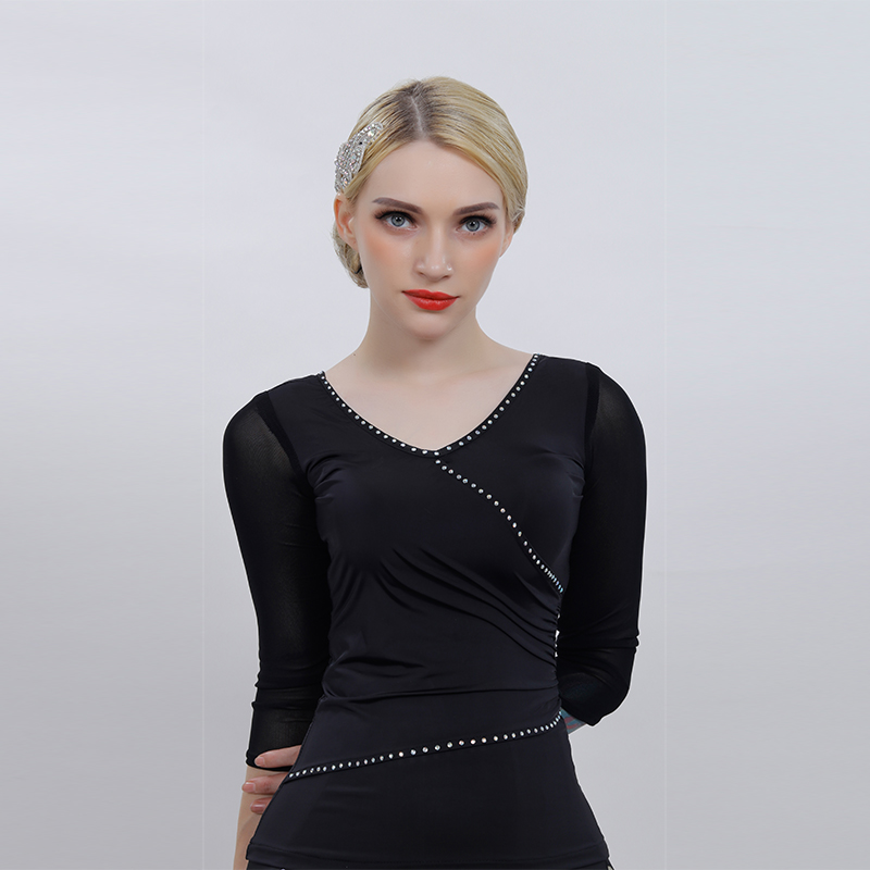 Latin dance outfit women's adult new blouses short sleeves spring and summer dance practice Morden dance to wear colorful diamonds