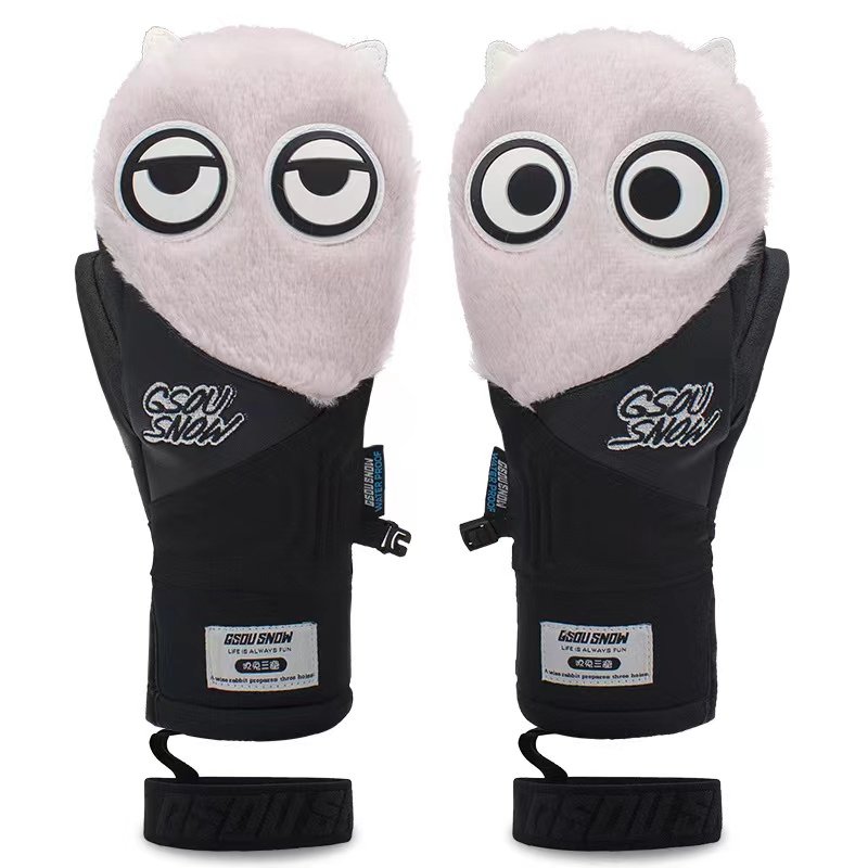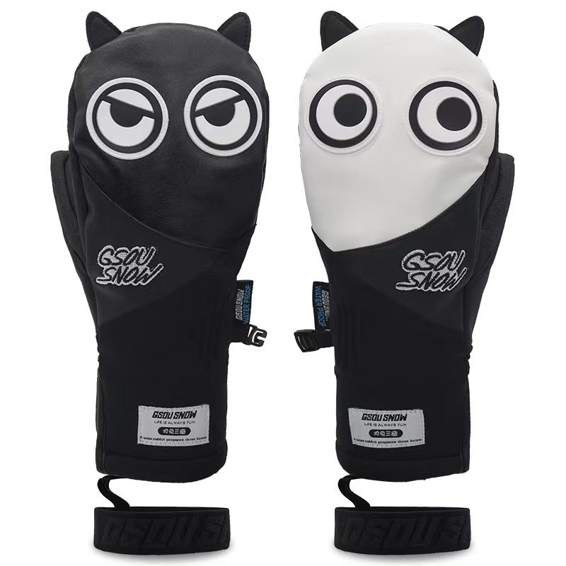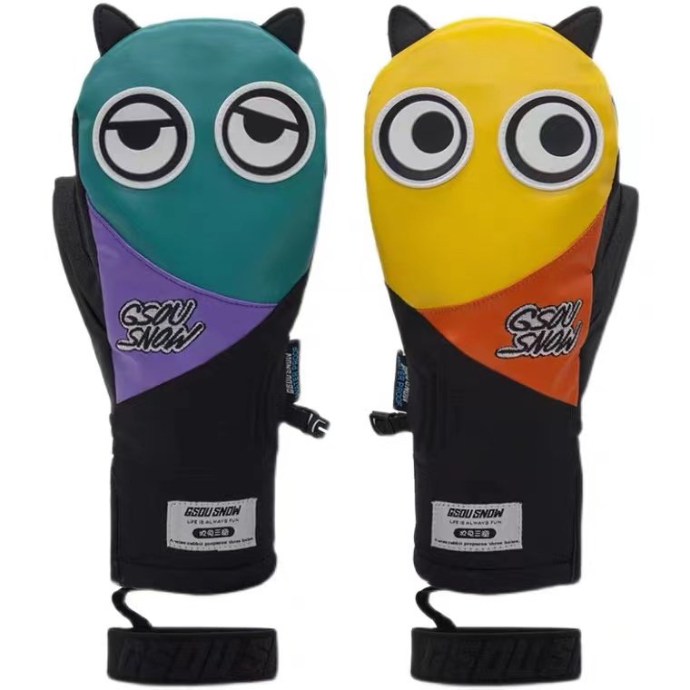Winter new snowboard and double-board ski gloves with big eyes, stuffy hands, warm and waterproof inner five-finger anti-lost rope