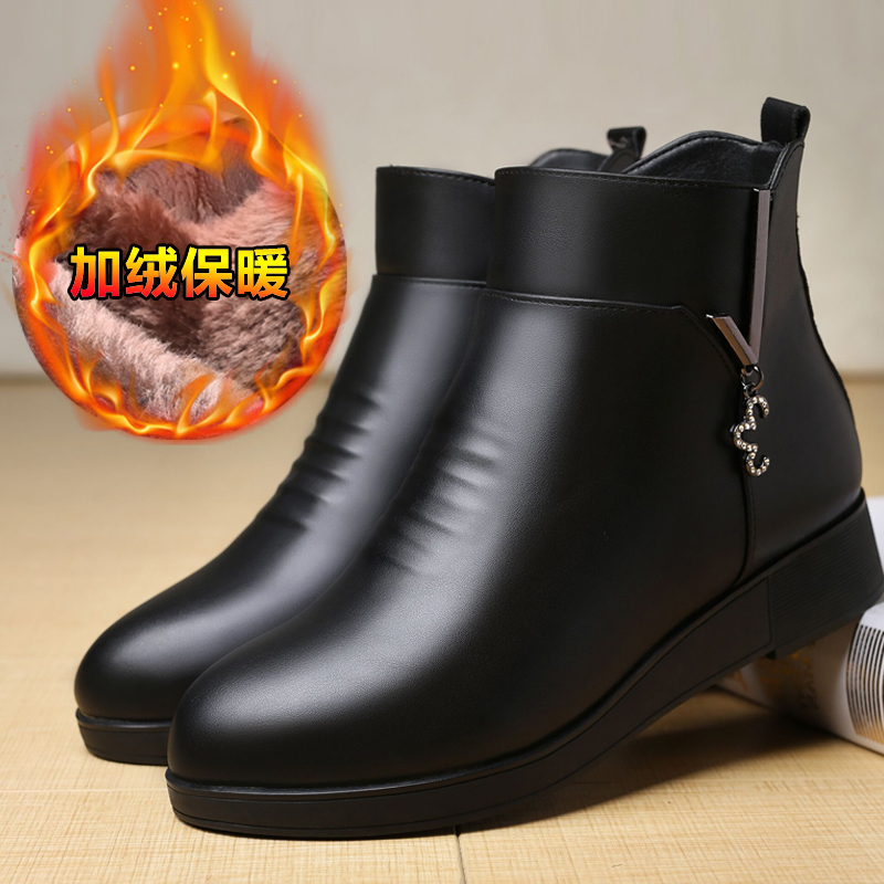 Mom Shoes Cotton Shoes Women Boots Winter Plus Suede Warm Mid Aged Women Shoes Genuine Leather Soft-bottom Short Boots Middle Flat Leather Shoes-Taobao