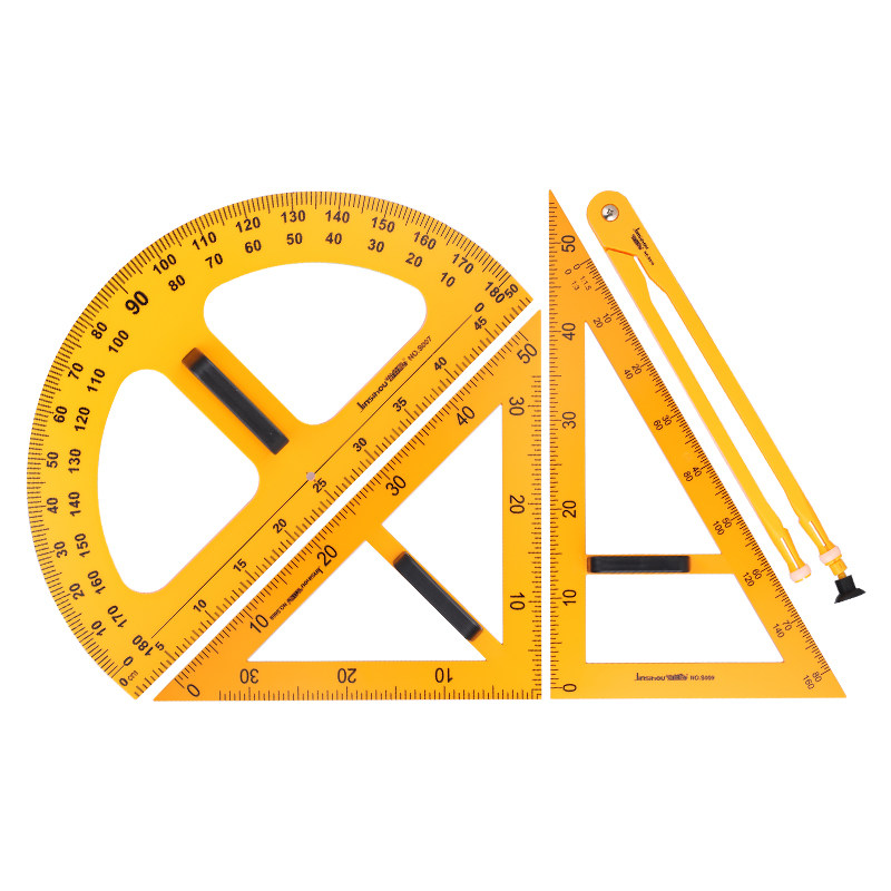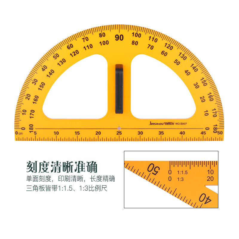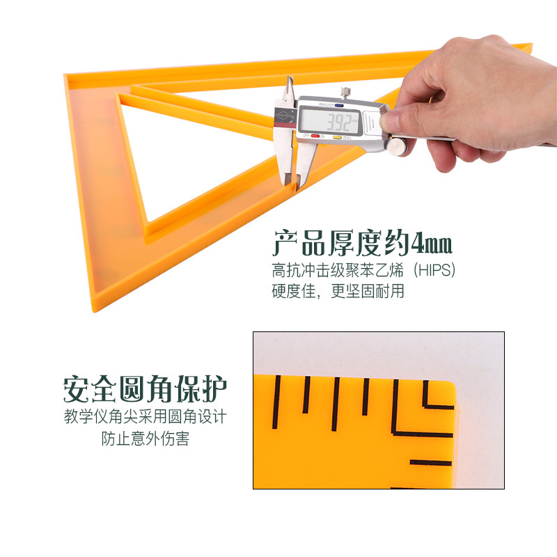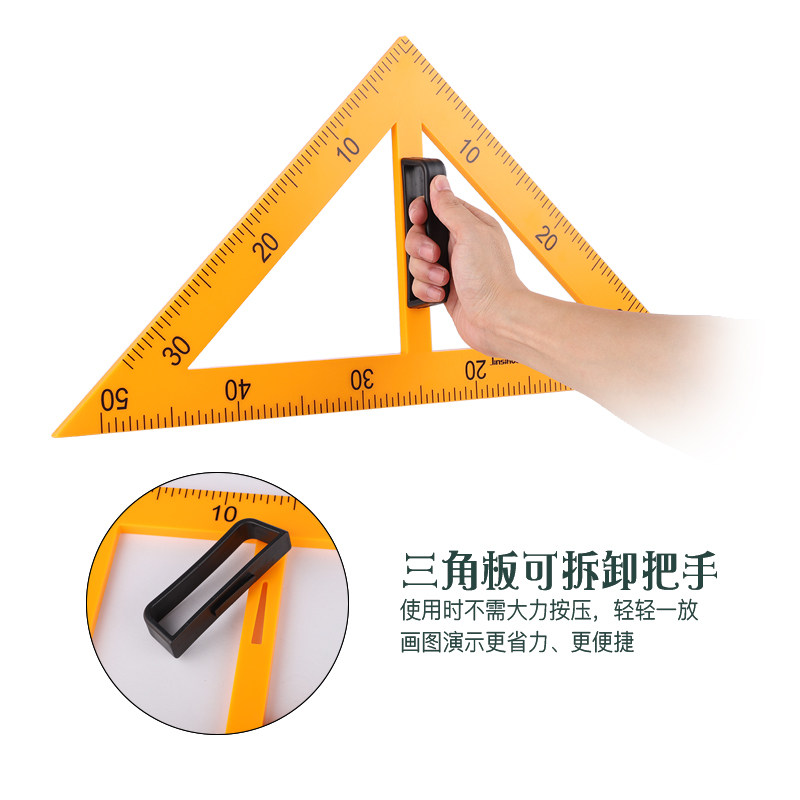 Teaching with plastic big number triangular plate Protractor triangular ruler suit with handle blackboard white board dual purpose teacher with teaching aid teaching instrument