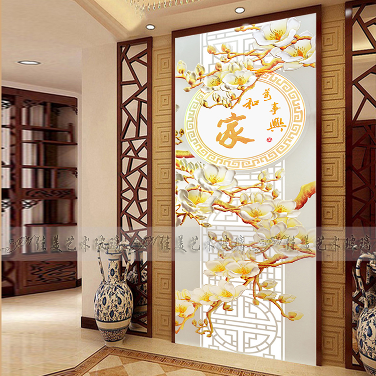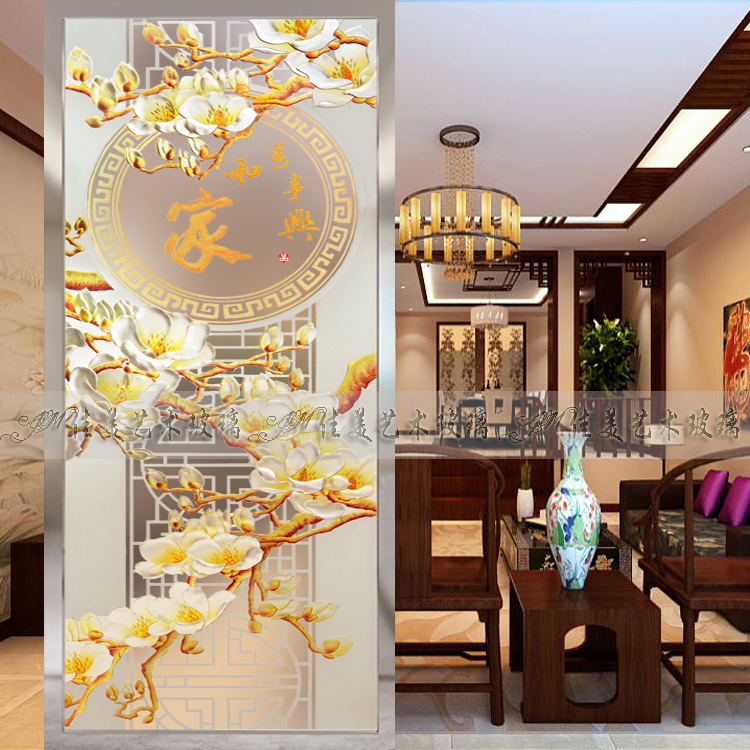 Art Fiberglazed Engraving Carved Living Room Genguan Screen Partition Background Wall Home and Masterpiece Jade Orchid