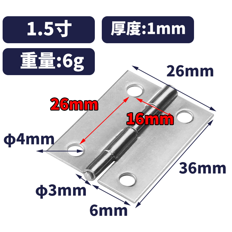 Stainless steel flat open flag-shaped small hinge miniature mini cabinet door 2 inches 3 inches doors and windows silent bearing folding box