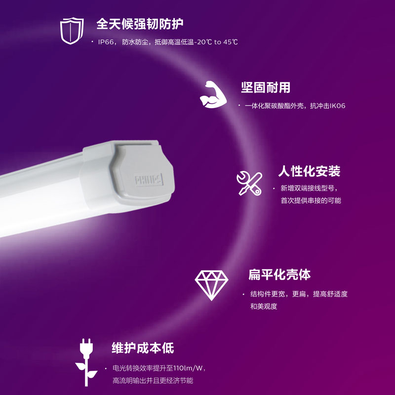 Philips LED tri-proof light 0 6m 9W 6500K White Philips LED tri-proof light 0 6m 18W 6500K White Philips LED Tri-proof light 0 6m 18W 6500K White Philips LED Tri-proof light 0 6m 18W 6500K White Philips LED tri-proof light