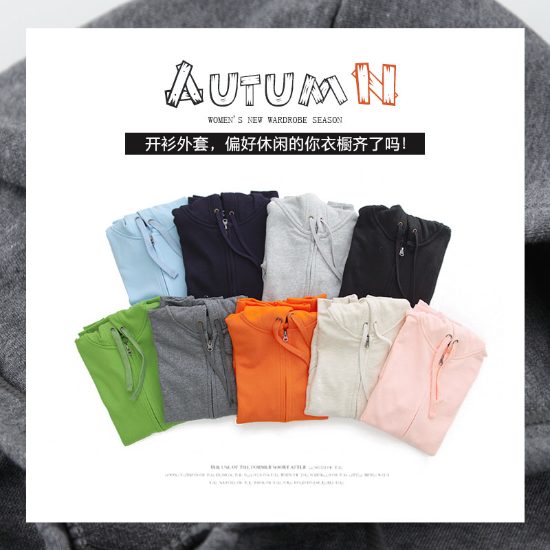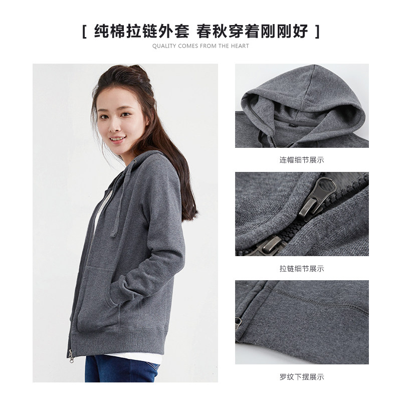Sports jacket women's spring and autumn cotton casual loose top hooded zipper cardigan hoodie medium and long version sweater