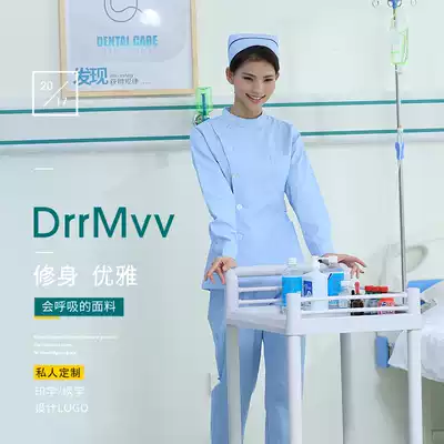 Nurse uniform two-piece suit stand collar blue jacket Oral dental work clothes Beauty embroidery division clothing long-sleeved female