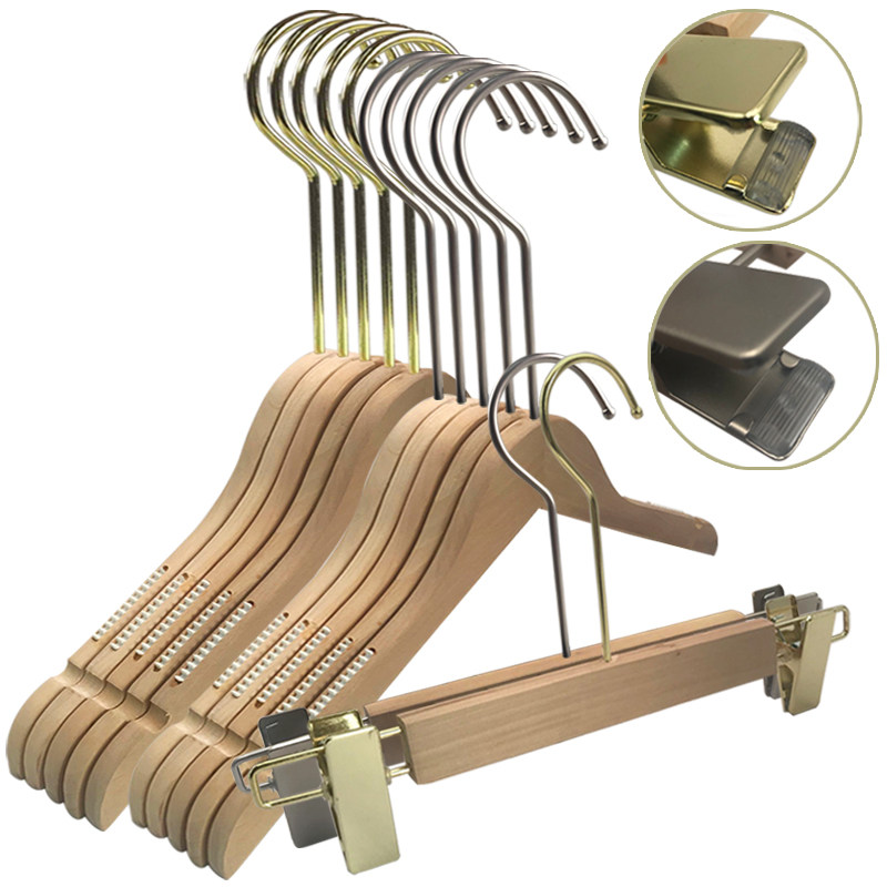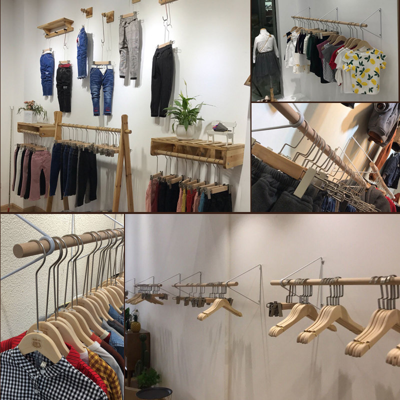 Log color paint-free non-slip solid wood children's hanger custom seamless cute Korean children's clothing store special clothing hanging support