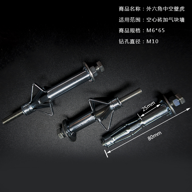 External Hexagon Hollow Brick Expansion Screw Light Brick Rising Silk Bread Brick Light Body Wall Anchor Bolt Hollow Wall Tiger Anchor Bolt