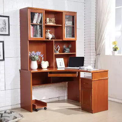 Solid wood desk Computer desk Modern minimalist corner desk with bookshelf bookcase combination desktop home desk