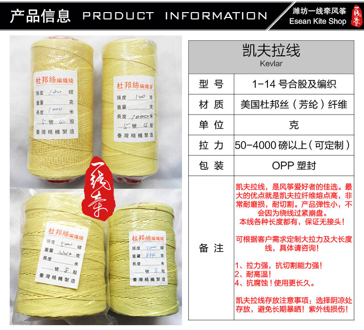 DuPont silk Kevlar kite line 0-14 Changzhou Peng Woven Kevra Kevlar