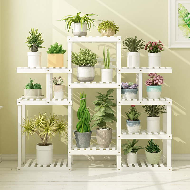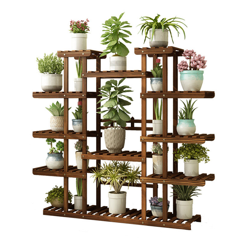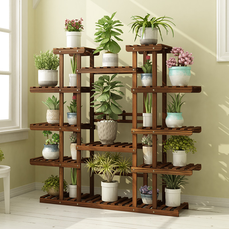 Large flower shelf multi-layer indoor hanger balcony shelf fleshy gold Ge solid wood floor pot planting stand living room household