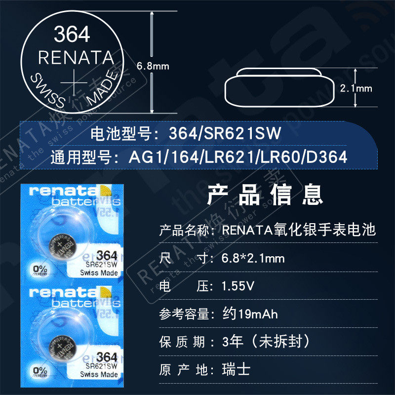 Renata Switzerland SR621SW watches battery 364 suitable for DWDaniel Wellington CASIO Skyshuttle maiden flight Yada CK waved female original quartz button for electronic pass