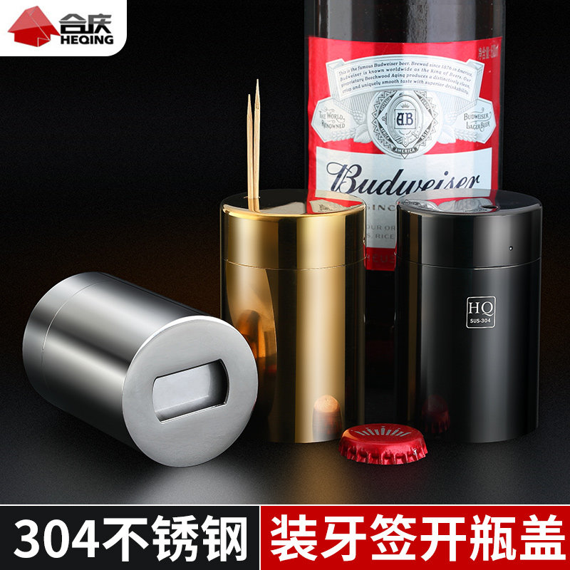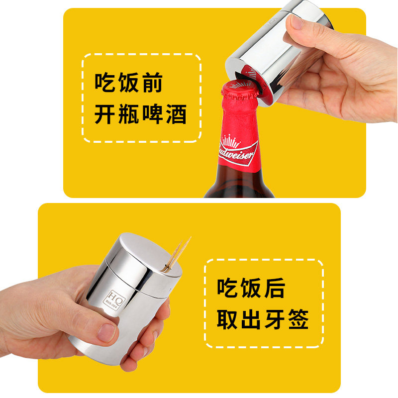 304 stainless steel toothpick box European toothpick cartridge Personality creative bottle opener Household toothpick bucket High-grade light luxury