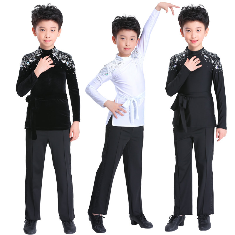Boy Latin dance suit Appraisal Exam Professional Dance Suit Children Gold Velvet New Autumn/Winter Young Children Long Sleeve Performance Match Suit