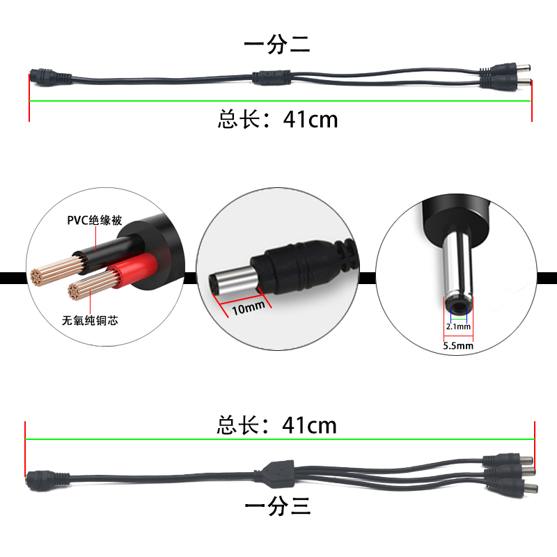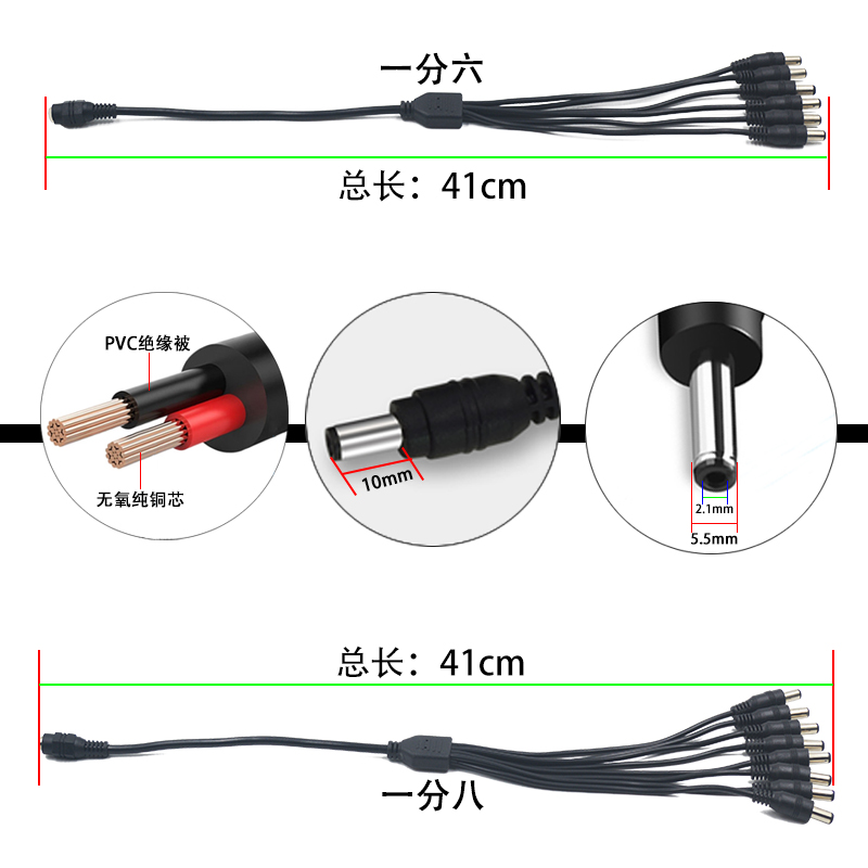 10% II Anti-Monitoring Power Supply Extension Line DC DC 12V5 5 * 2 1mm Joint One Drag Eight-way router-Taobao