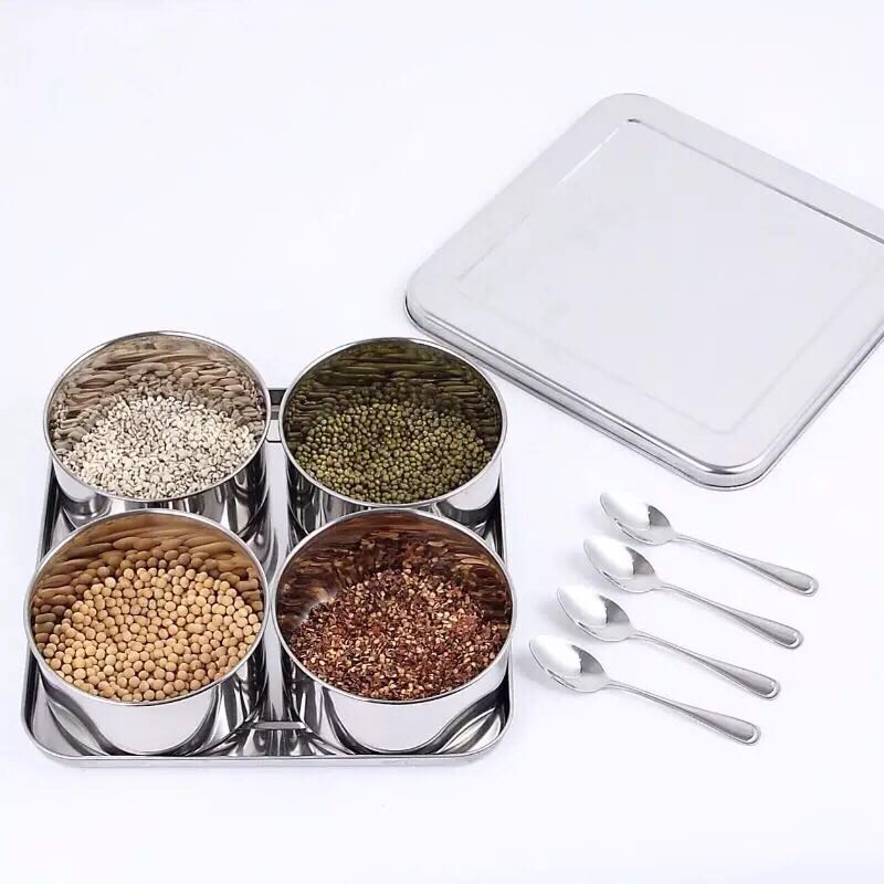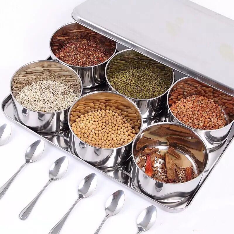 Stainless steel seasoning box thickened seasoning box chef special super large four-grid six-grid canteen hotel with lid material box