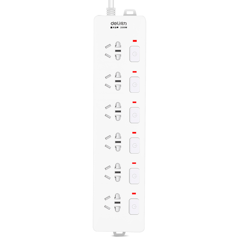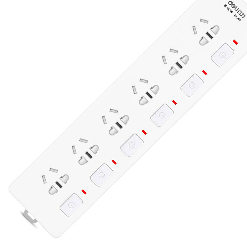 Deli 3980-03 new national standard independent 6-bit combination hole 3 meters anti-electric shock sub-control switch socket