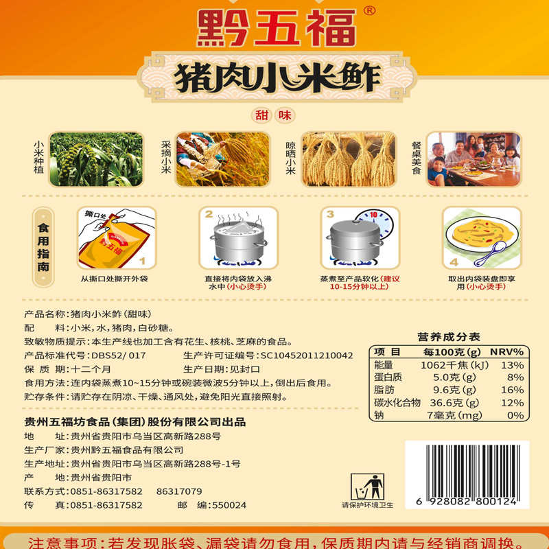 Qianfu-Xiaomi's 400g Pork Taste * 2 Pack Guizhou Teater Snack Millet Slag