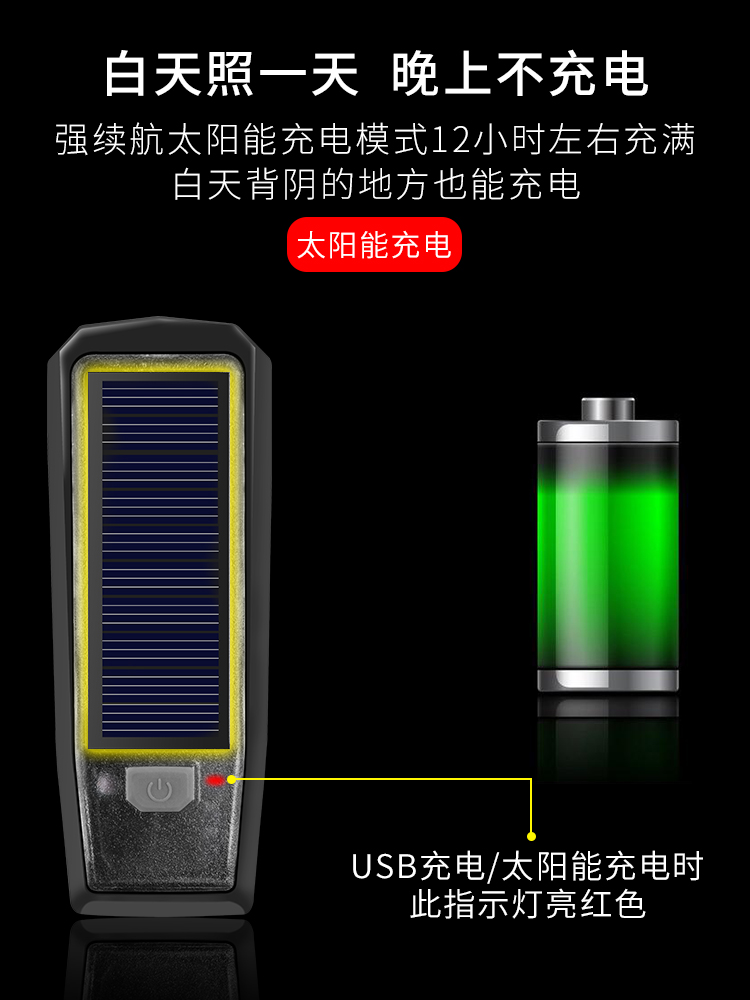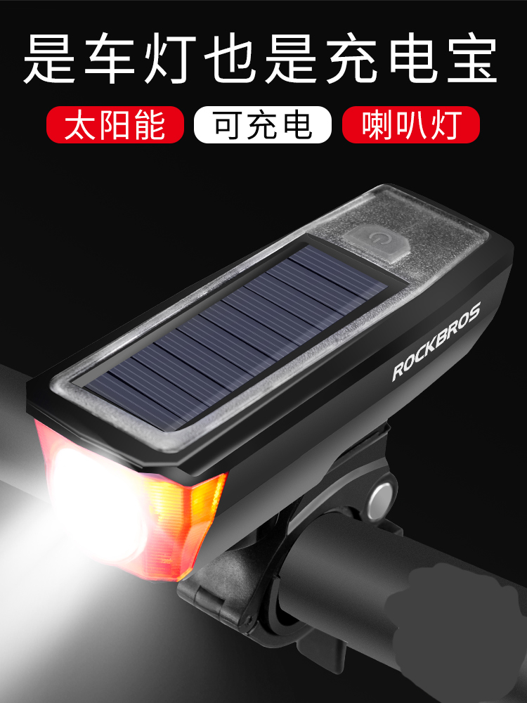ROCKBROS BIKE LIGHT CAR FRONT LIGHT SOLAR CHARGING HORN BRIGHT LIGHT FLASHLIGHT MOUNTAINEERING BIKE NIGHT RIDING