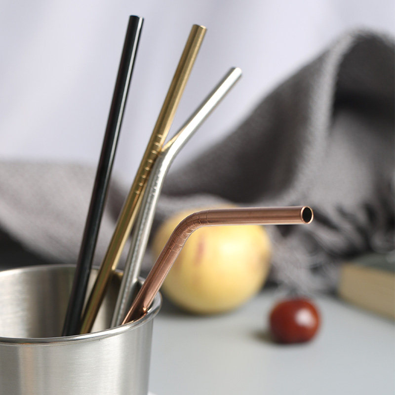 304 stainless steel straw environmental drinking straw milk tea cold drink thick straw metal elbow rooster cup iron straw portable