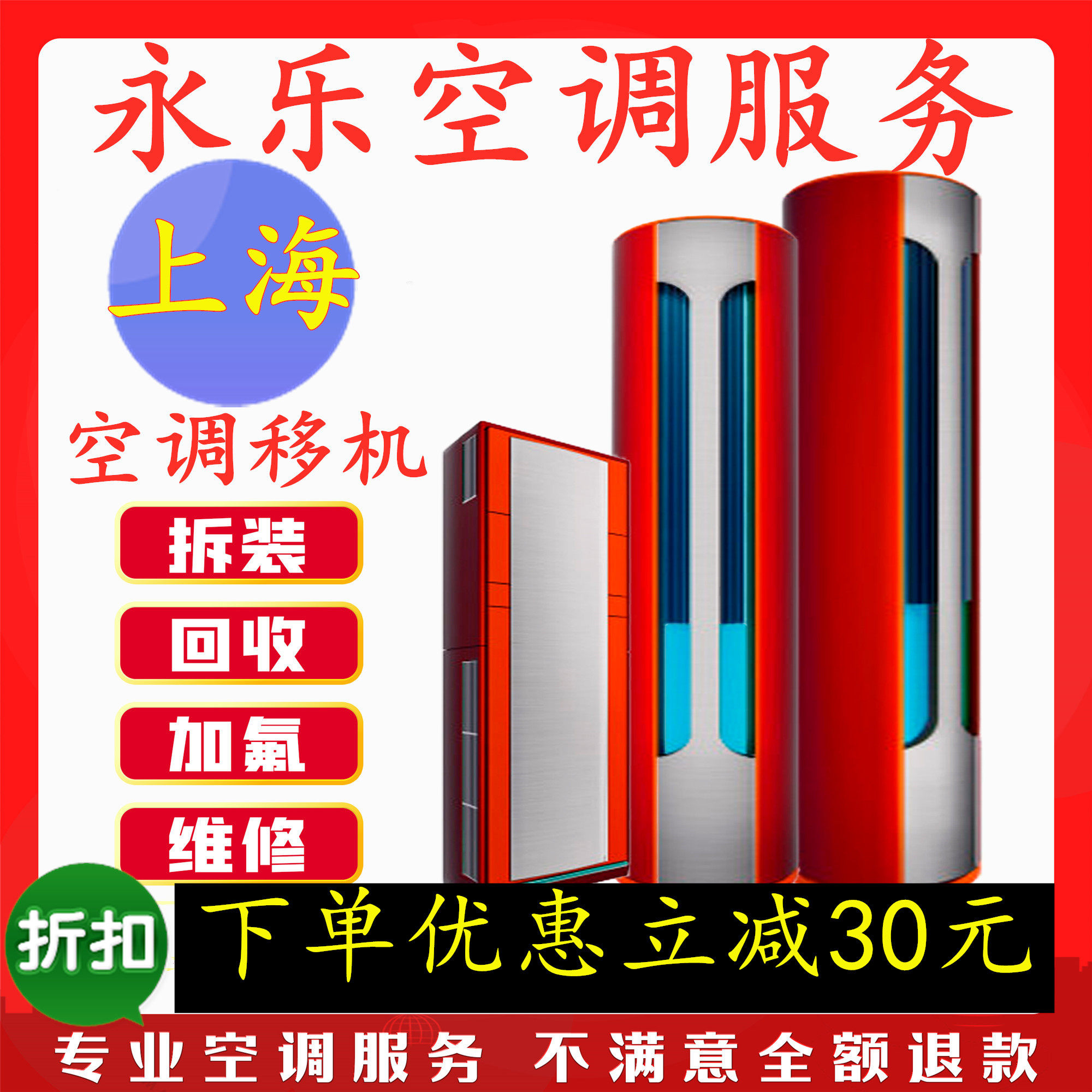 Shanghai air conditioning transfer machine disassembly and installation of air conditioning fluorine cleaning central air conditioning maintenance door-to-door service used air conditioning recycling