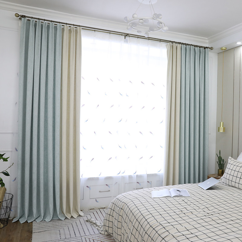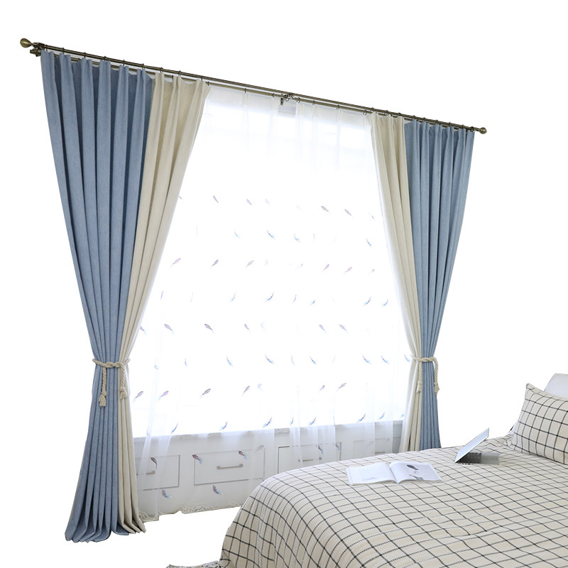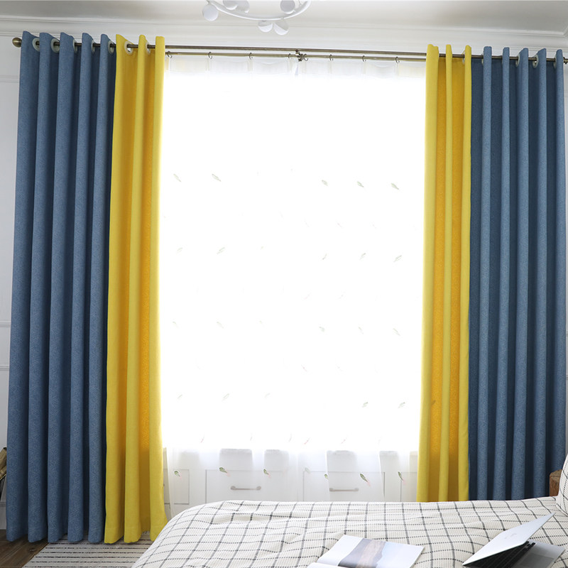 Splicing thickened Chenille simple modern blackout curtains Living room bedroom floor-to-ceiling windows custom floating curtain yarn