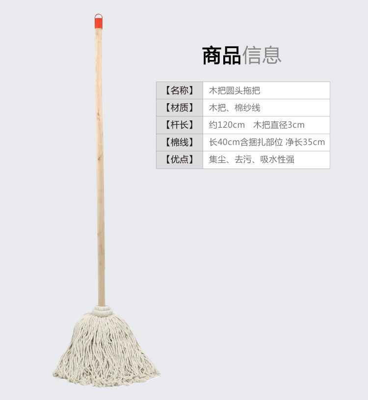 Ordinary mop wooden pole cotton thread home old-fashioned absorbent mop hotel factory property special large round head mop