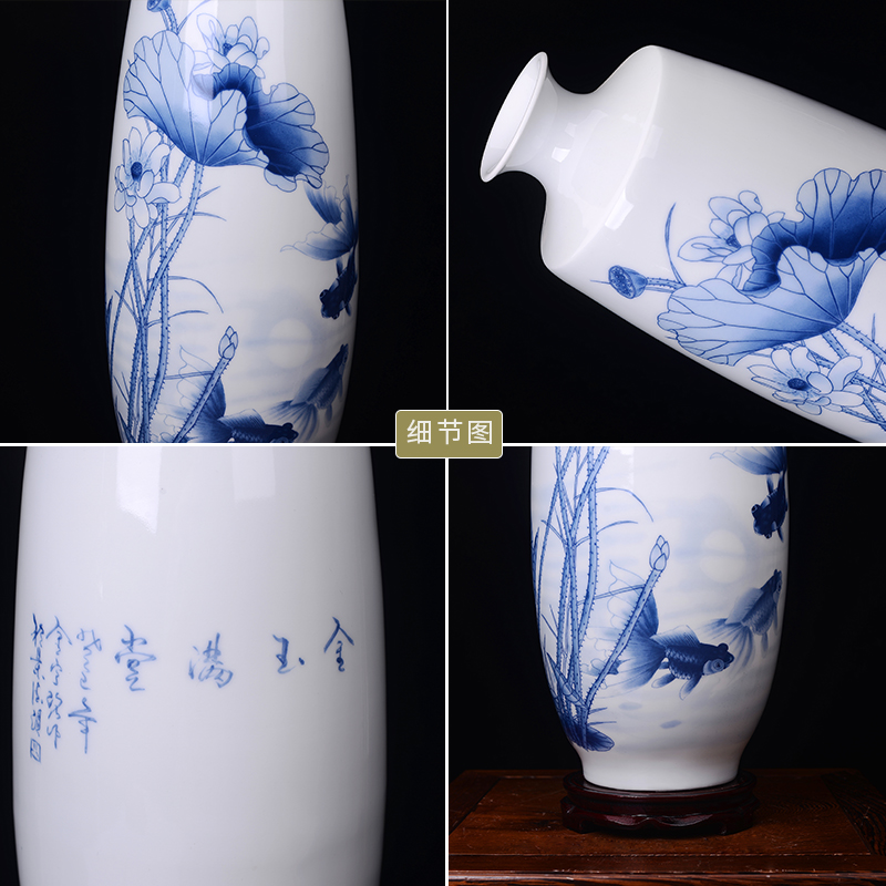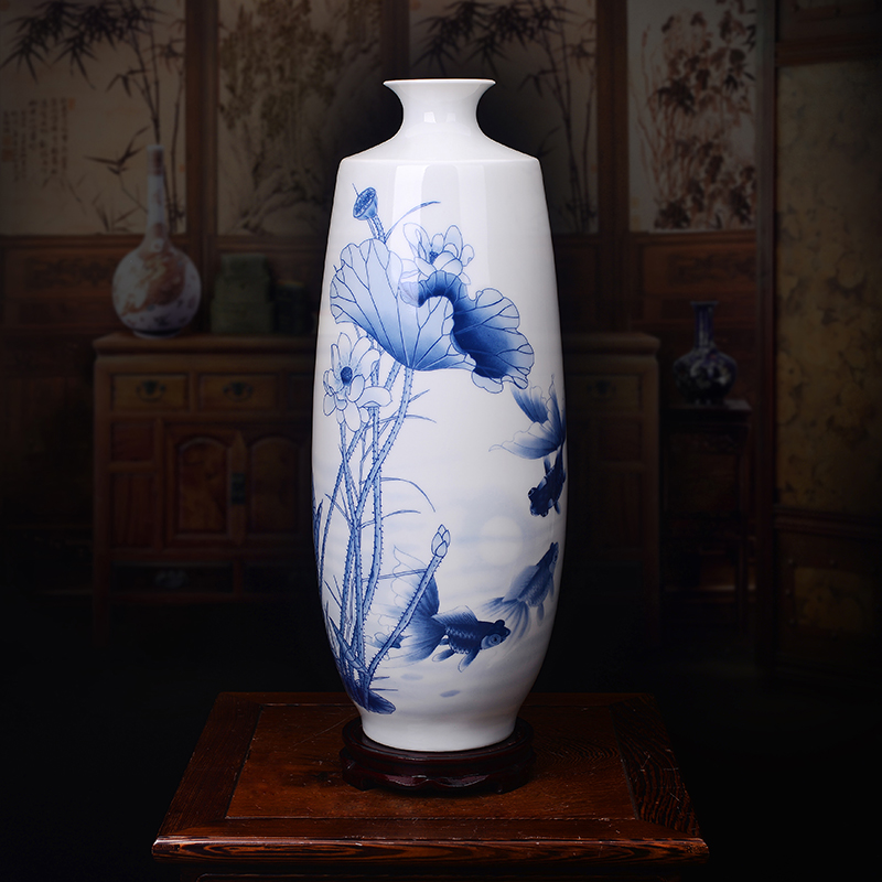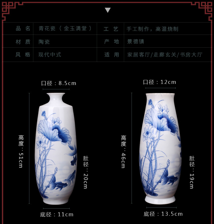 Jingdezhen Ceramic Ware Large Vase Green Flower Porcelain New Chinese Style Living Room TV Cabinet Home Residence Decoration Process Flower Arrangement Pendulum