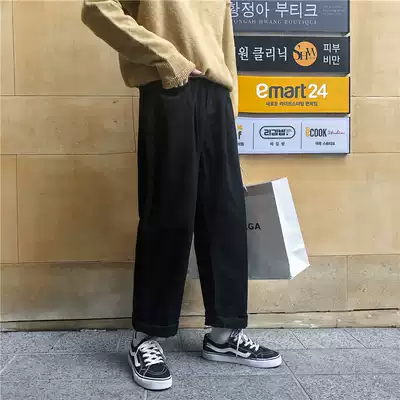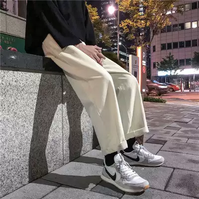 Spring and Autumn retro washed beige loose wide leg pants men Korean youth denim pants trend straight ankle-length pants