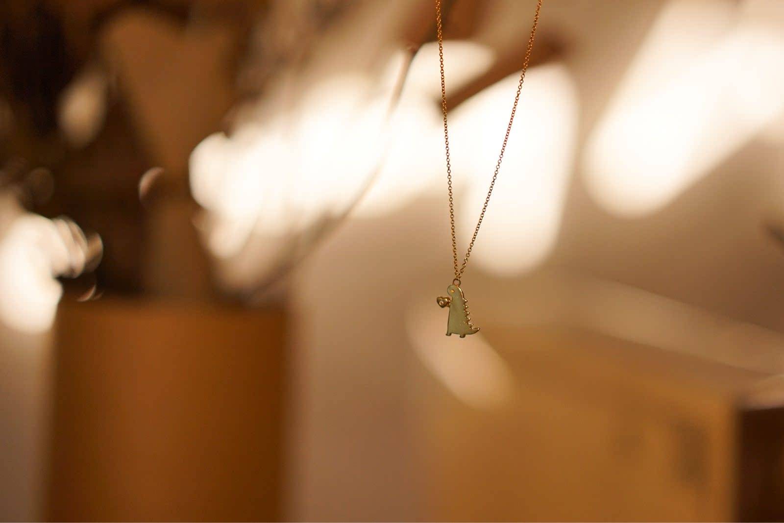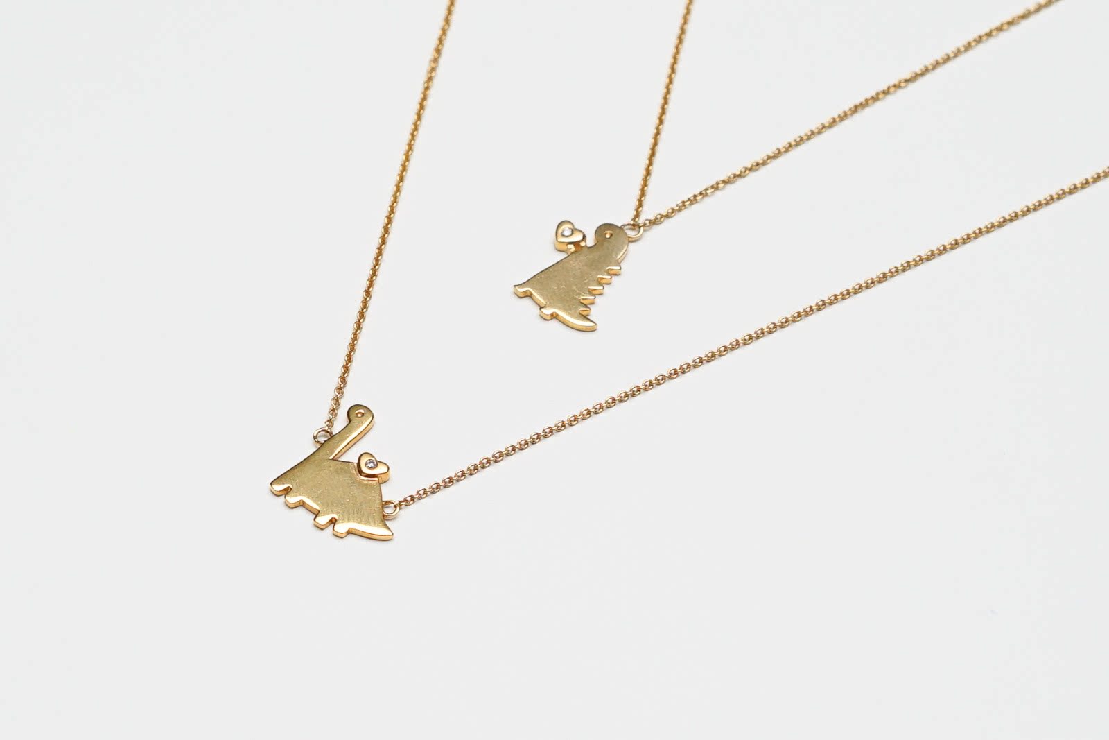 Toothpick Marumaru custom original parent-child dinosaur 18k gold true diamond necklace ear needle does not support return