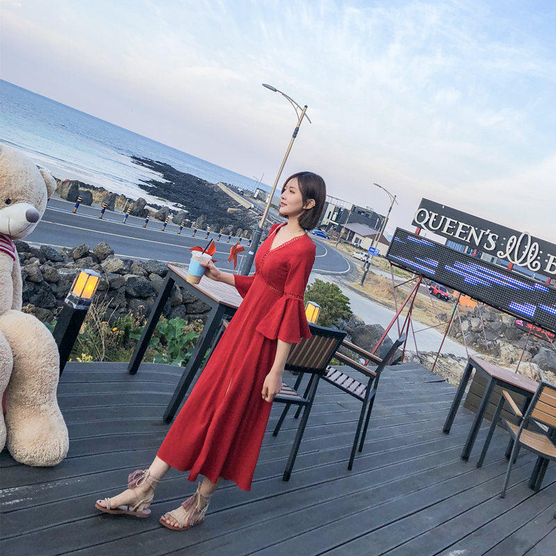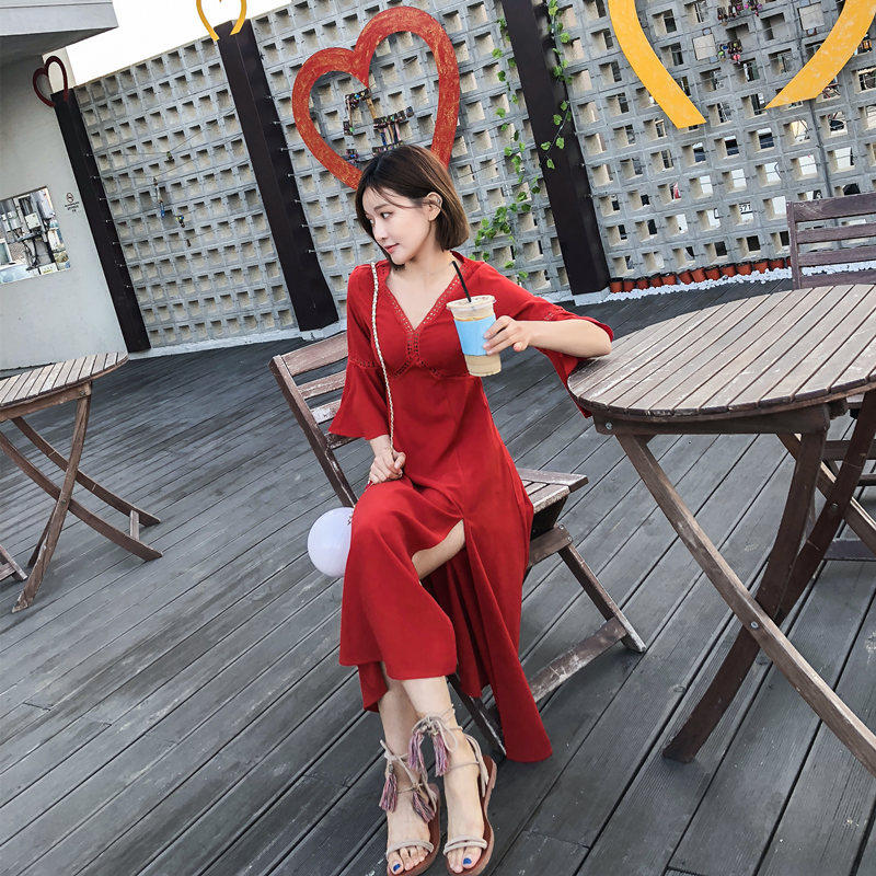 Hainan Sanya Beach Skirt Woman Seaside Resort Long Skirt 2022 New Tea Card Salt Lake Red Ocean Dress Summer