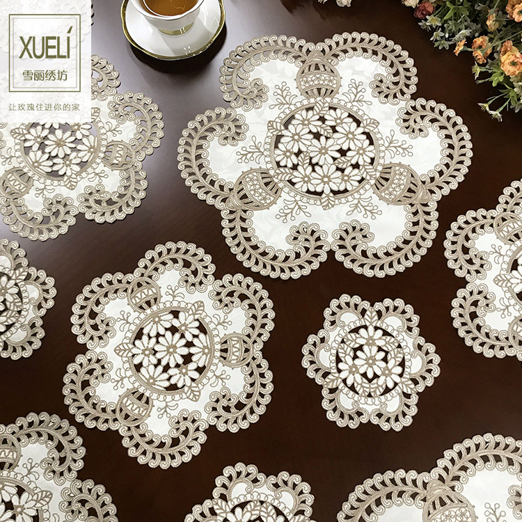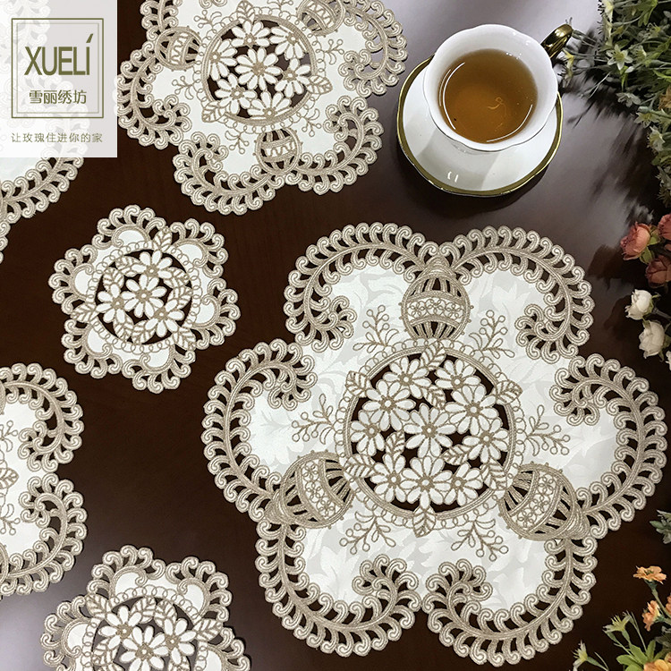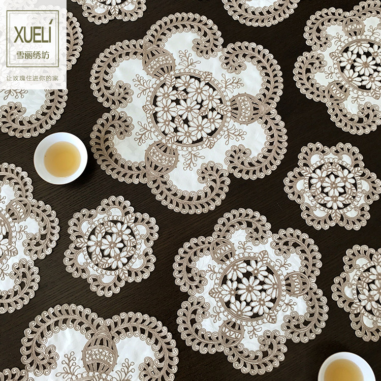 Tian Garden Cloth Art Eu Style Chinese American Reworked Small Machine Embroidered Table Cushion Round Cushion Western Dining Mat Cup Cushion Flower Group Kini-Taobao