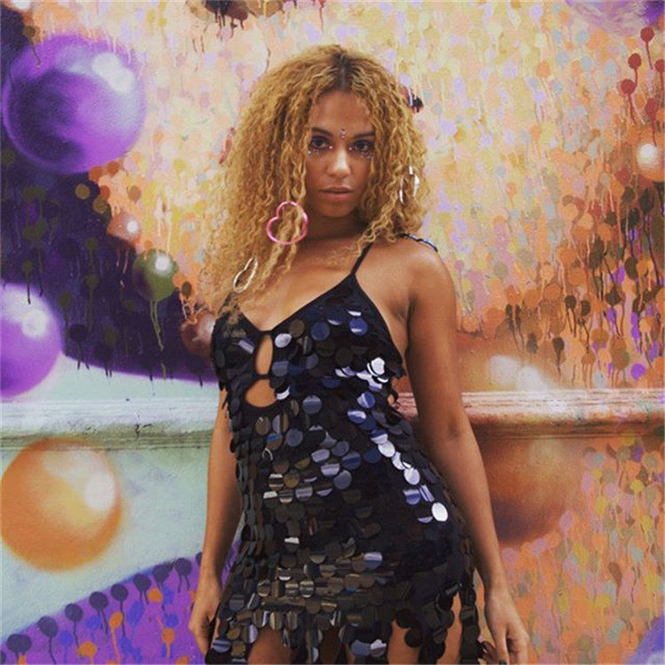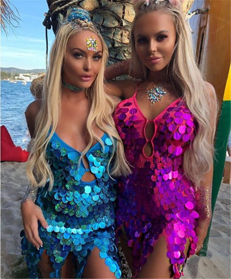 Colorful fish scale bright sheet hollowed out even body dress nightclub Fancy Dress Rehearsal for a Bar DS Female Singer Fish Scale Short Gown