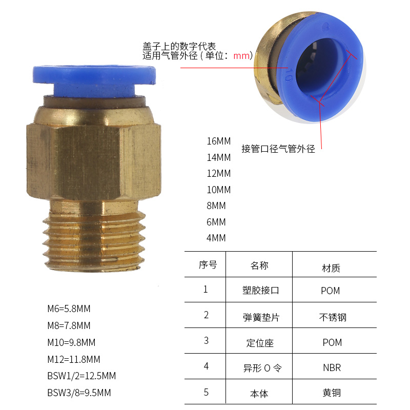 PC4-M6*1PC6-M6*1PC6-M8*1PC8-M10*1 5PC8-M12*1 25PC8-M12*1 75P