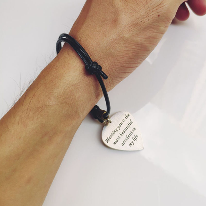 Sterling silver custom guitar paddle bracelet necklace lettering photo student couple pick pendant male and female birthday gifts