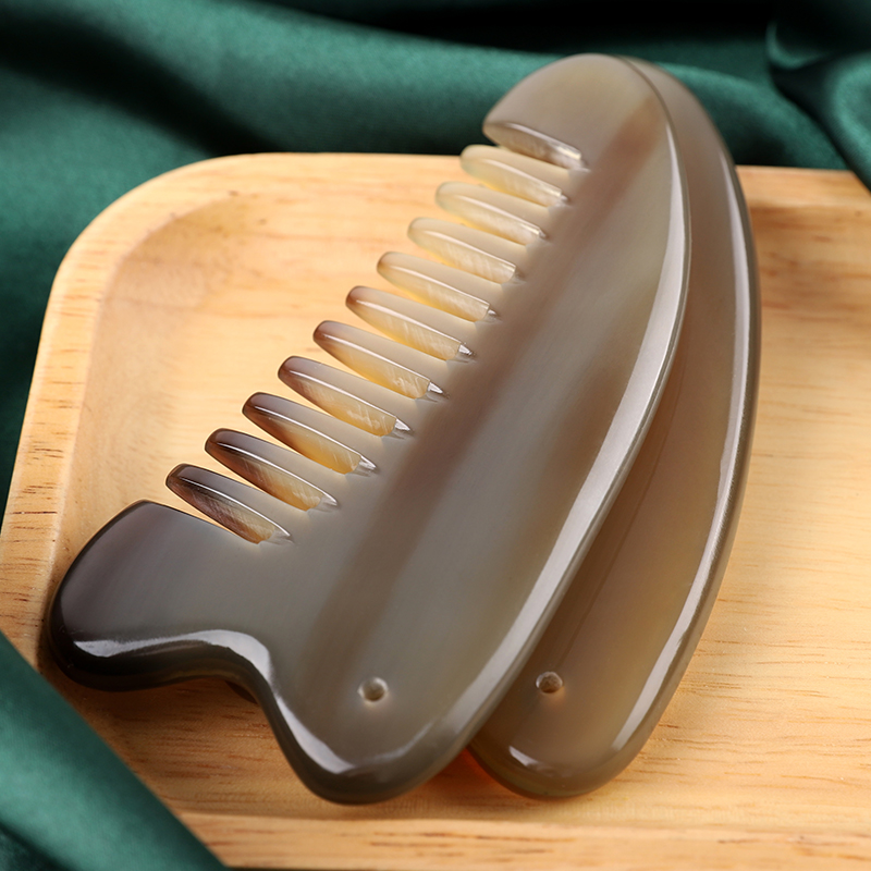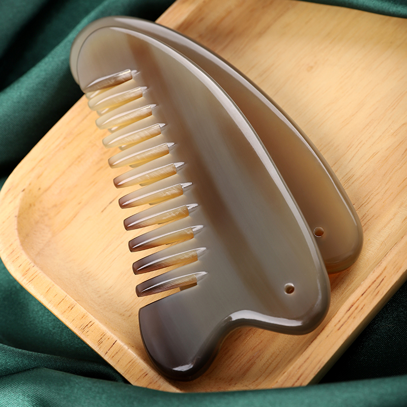 Natural Horn Comb Head Scraping Plate Head Therapy Scraping Comb Massage Comb Dredge Meridians Comb Scalp Redial