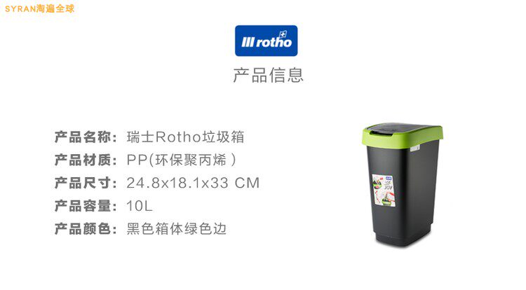 Switzerland imported Rotho European-style environmentally friendly home simple flip lid rocking lid trash can trash can trash can 10L