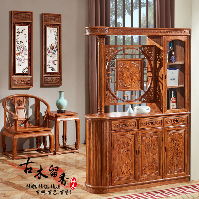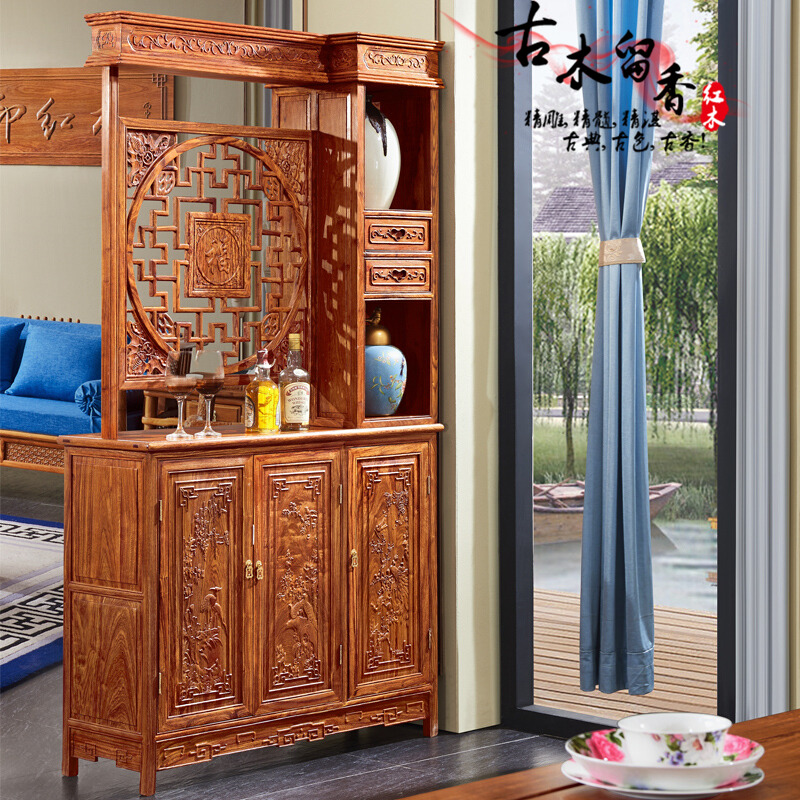 Mahogany African rosewood Hedgehog rosewood partition cabinet Entrance cabinet Living room wine cabinet Chinese double-sided screen partition