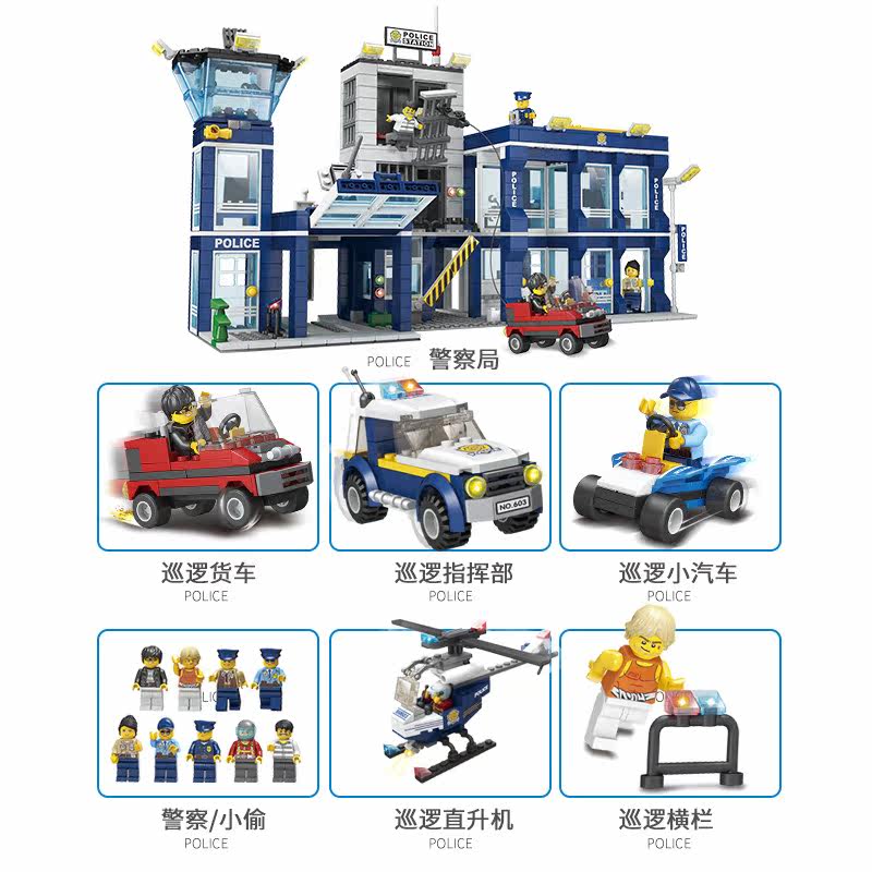 Children's Building Blocks Assembled Toys Educational 6-7-8-10-year-old Boys 3 Intelligence Assembled City Police Car