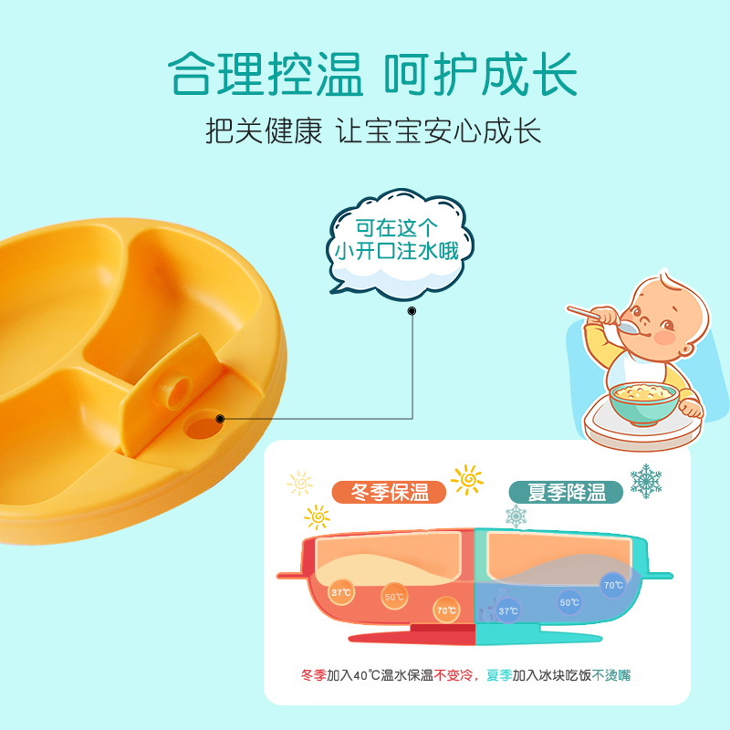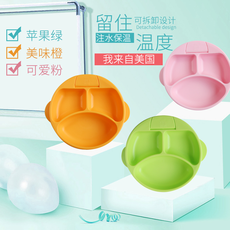 American Bumkins infants and young children water-filled thermal insulation bowl baby divided plate tableware non-staple food bowl suction cup anti-fall