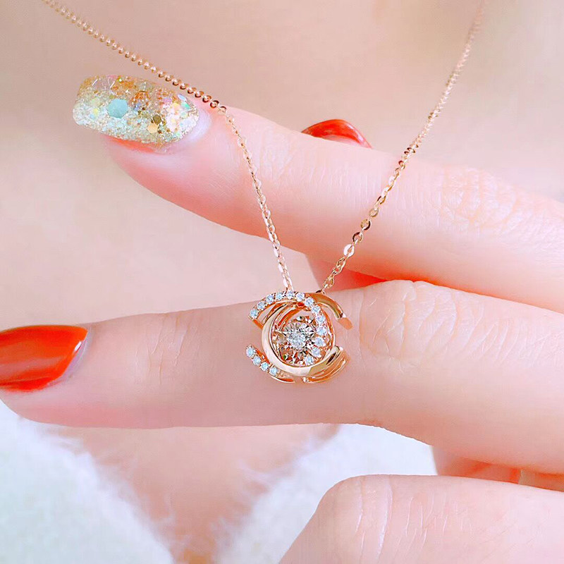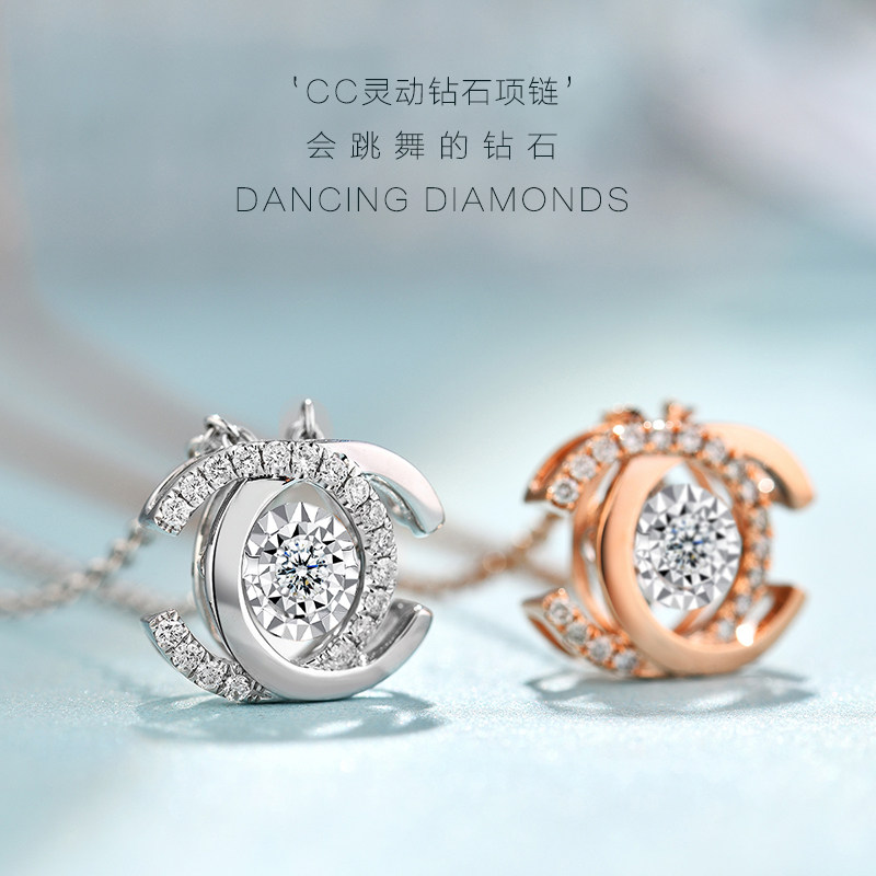 Poetry Hwa Jewelry Color Gold Double C Hearse Diamond Pendant Female Real Drill Rose Gold Frivolous Bone Chain Brick Stone K Gold Necklace Single Pendant