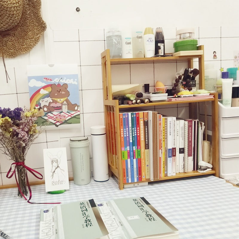 Simple desktop bookshelf Simple modern desk bookshelf Office desktop shelf Nanzhu storage shelf For students