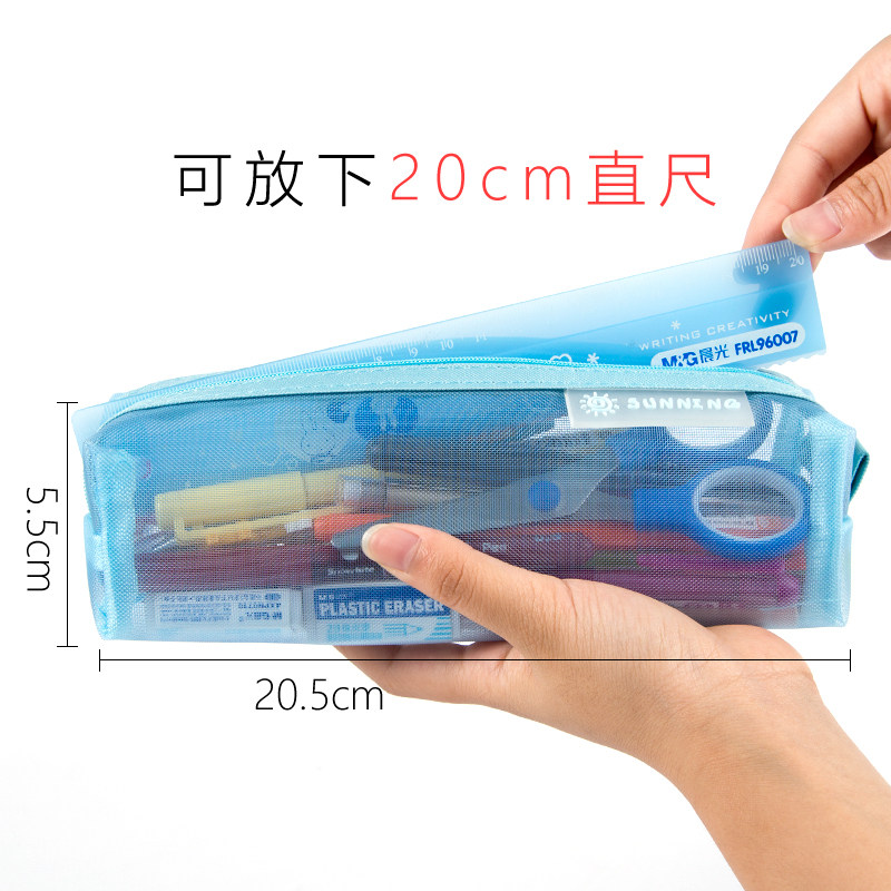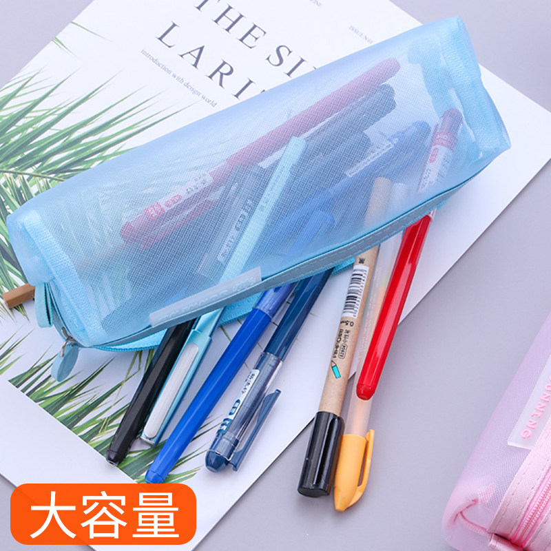 Transparent Mesh Yarn Pen Bag Girl INS day Department lukewarm wind small capacity minimalist stationery bag junior high school student gaokao small portable exam Private examination zipped pencil Pencil Bag Woman