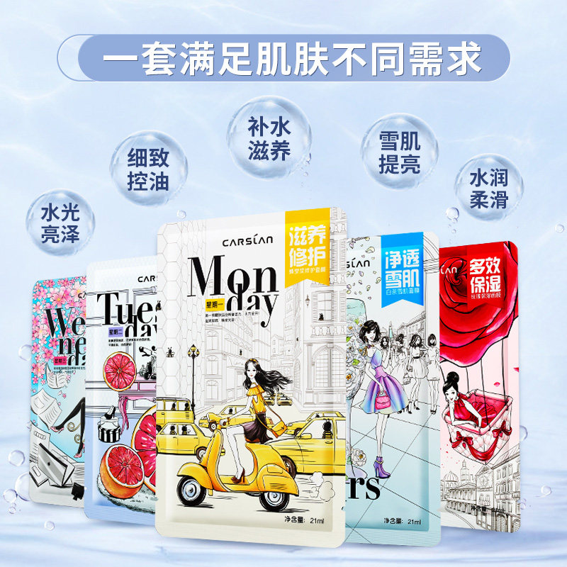 Royal jelly repair mask (7 pieces of clothing) Western pomace meticulous mask (7 pieces of clothing) Cherry Blossom Water Light Muscle Mask (7 Pieces) White Tea Snowmyofacial Mask (7 Pieces Of Clothing) Rose Moisturizing Mask (7 Pieces Of Clothing) Lingo Deep