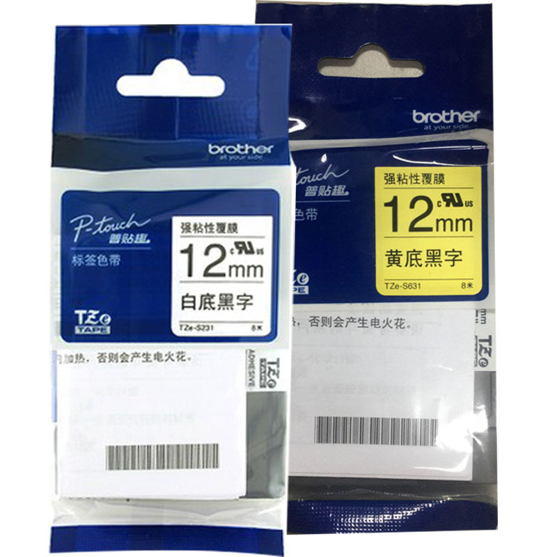 Brother TZE-S231 white background black strong sticky 12MM label machine ribbon PT-1010 1280 self-adhesive lamination