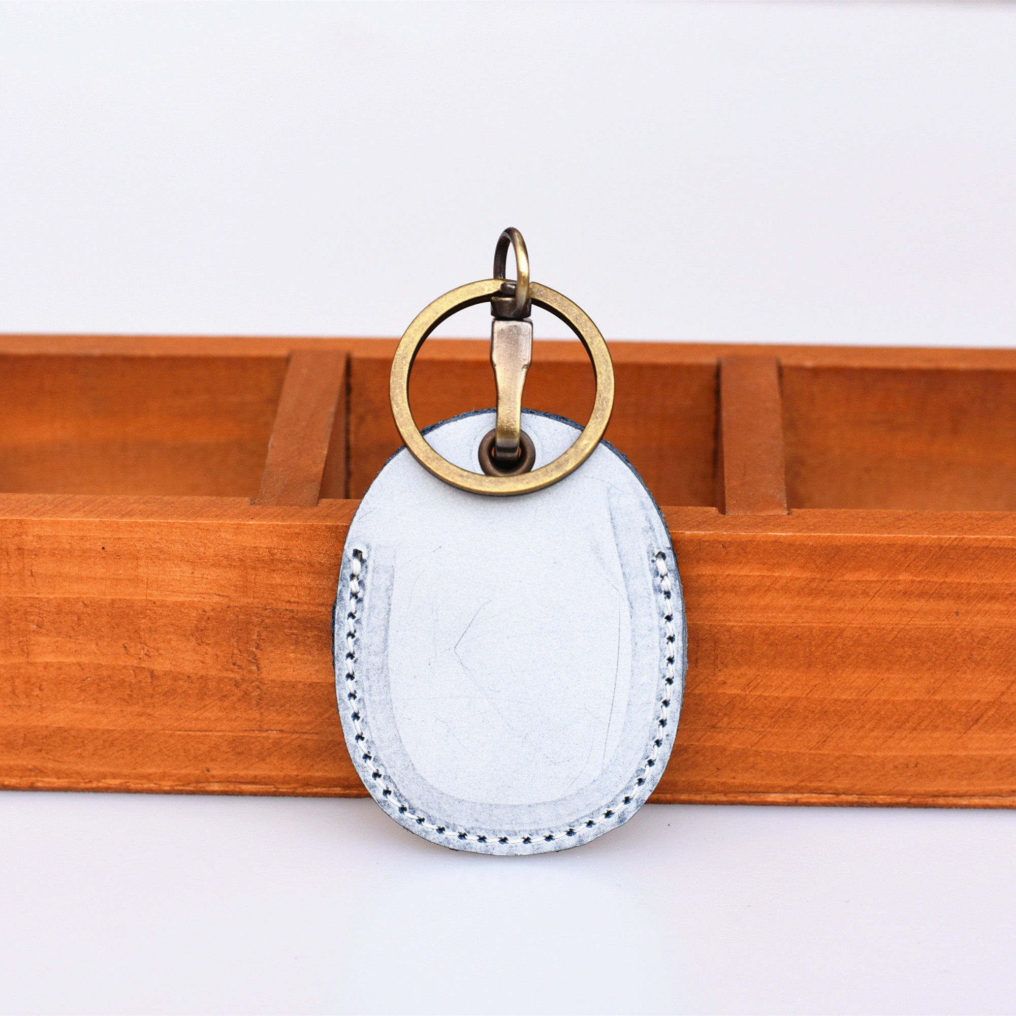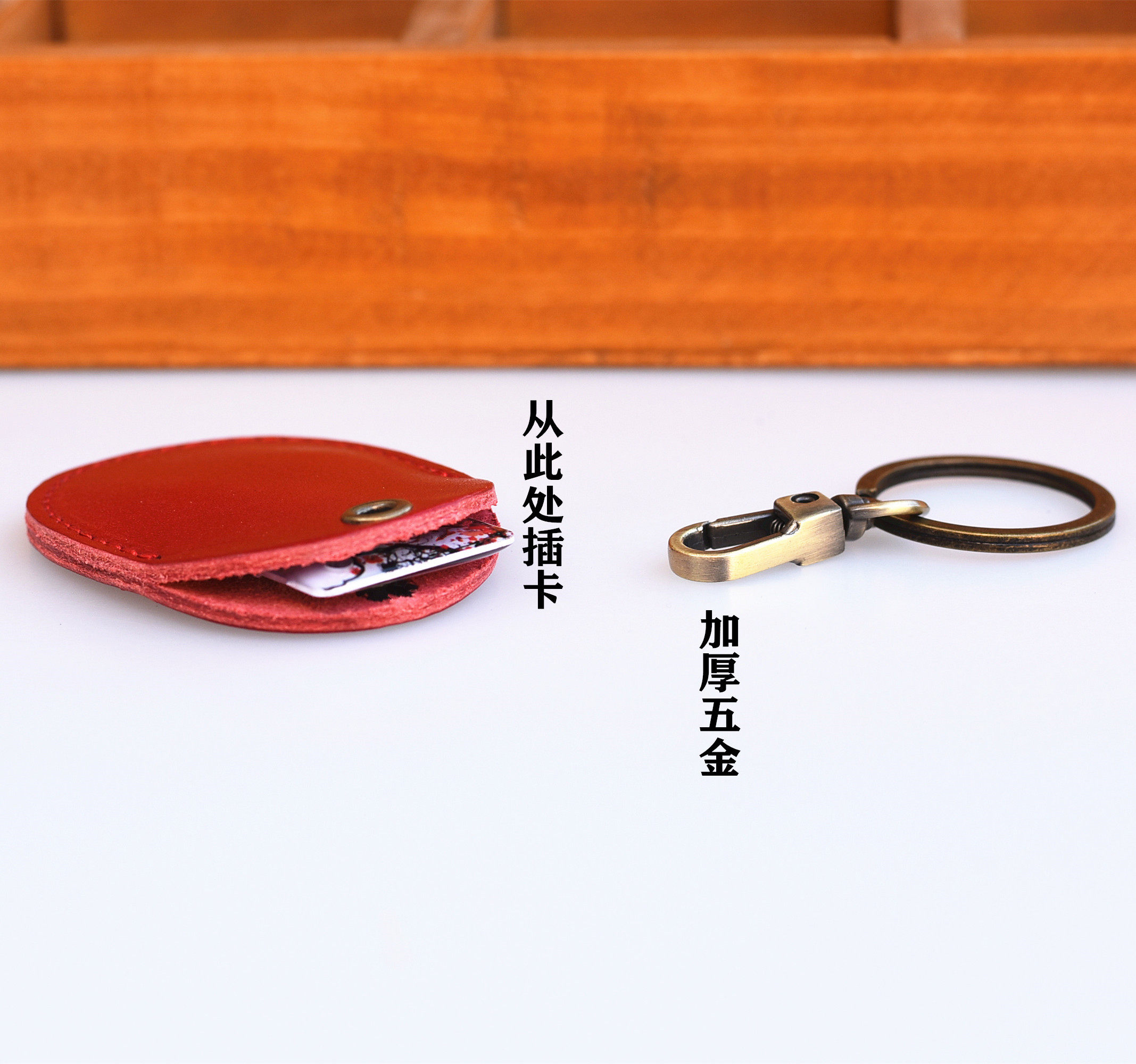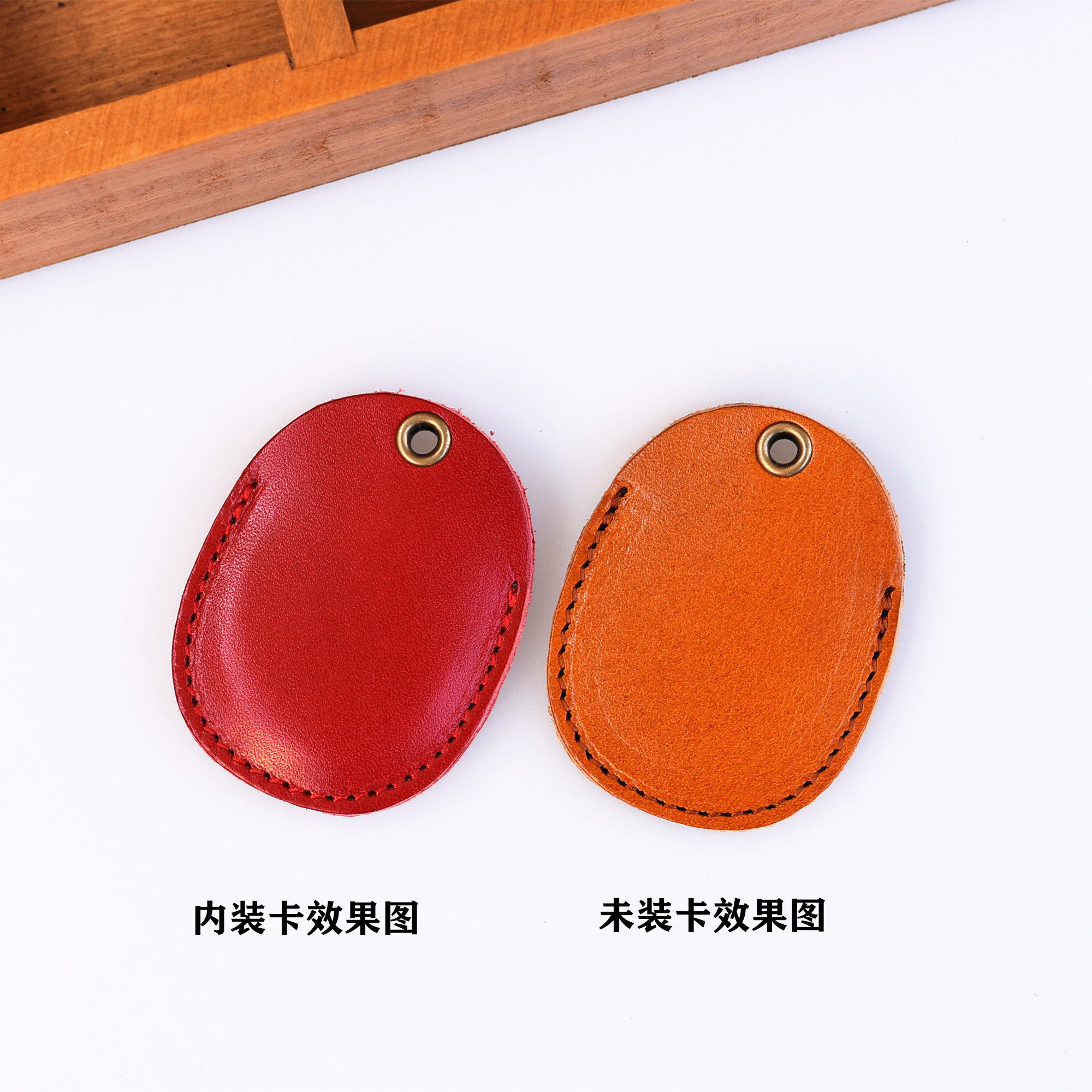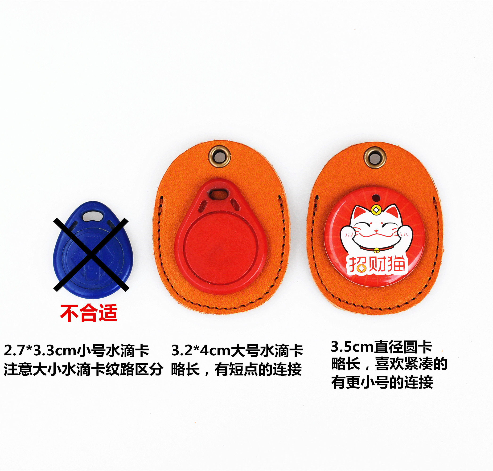 Genuine leather mini card holder cowhide bus subway access control elevator IC ID water drop round rice card work card card